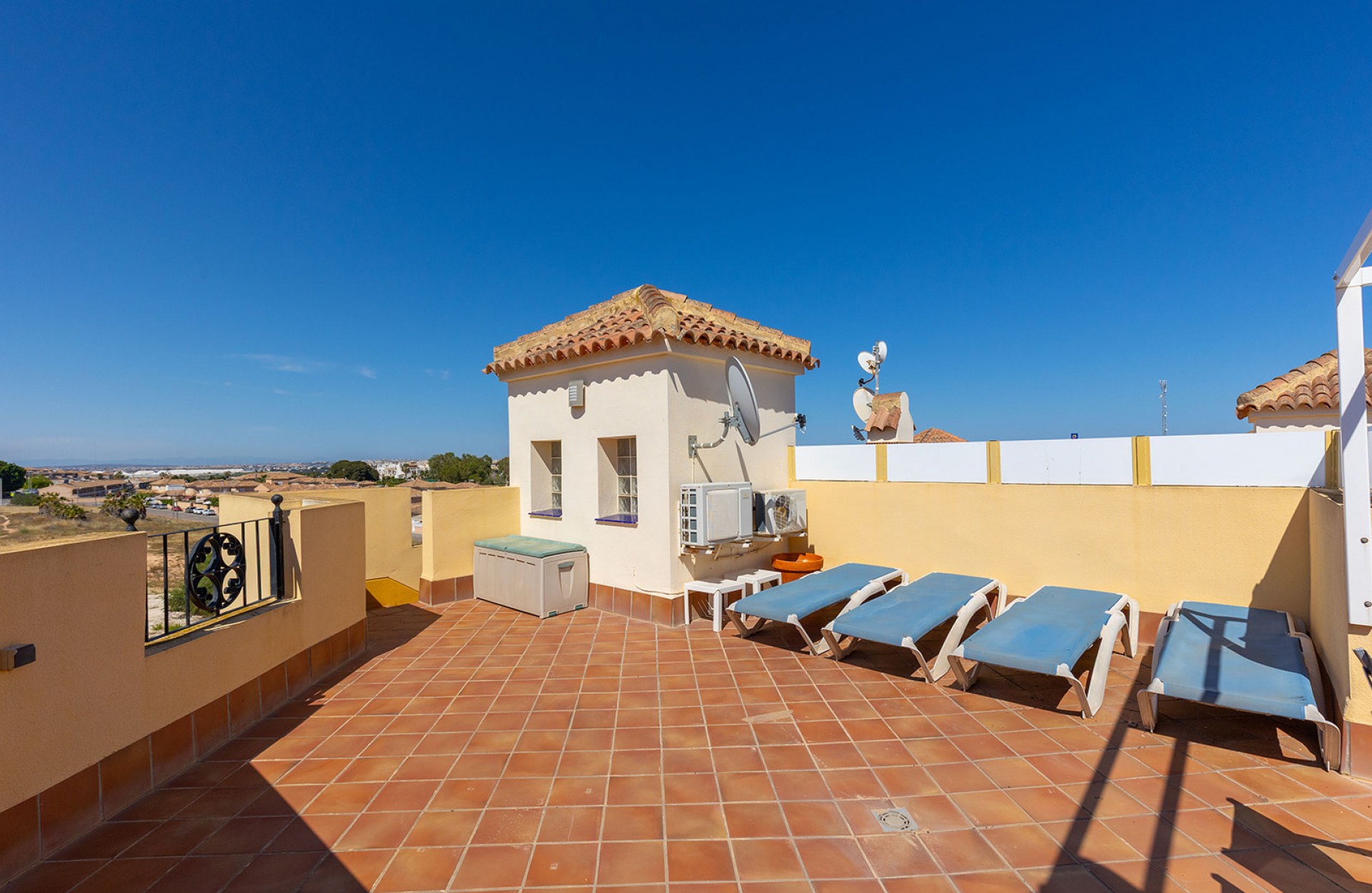 Presentamos este magnífico ático de esquina situado en una urbanización privada y consolidada, que ofrece una piscina comunitaria y zonas comunes de alta calidad, en la prestigiosa zona de Punta Marina, Punta Prima. La propiedad se encuentra en un estado impecable y destaca por su elegante estilo rústico, que aporta un ambiente cálido y acogedor. Su orientación oeste garantiza una excelente iluminación natural durante la tarde, creando espacios luminosos y agradables. Este ático dispone de un amplio solárium privado, ideal para disfrutar del sol y de las vistas despejadas a la calle en un entorno tranquilo y privilegiado. Una oportunidad única para quienes buscan una residencia principal, una segunda vivienda o una inversión con alto potencial en una de las zonas más demandadas. Si desean concertar una visita o recibir más información, no duden en ponerse en contacto con nosotros.