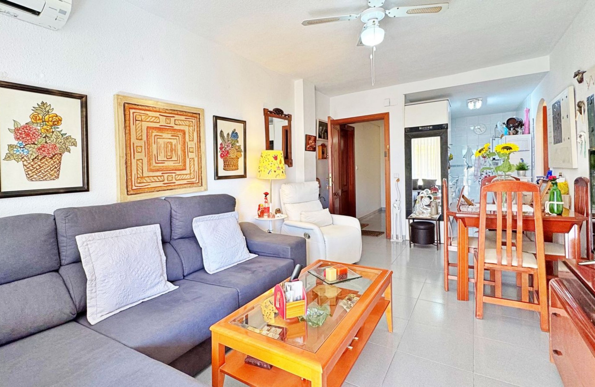 Apartamento en venta en Rocío del Mar, Torrevieja, situado en una exclusiva zona residencial junto a Punta Prima, a tan solo 200 metros del mar. Esta vivienda de 43 m² se encuentra dentro de una urbanización privada con piscina comunitaria y ofrece un ambiente tranquilo y familiar durante todo el año. El apartamento está en excelente estado de conservación y destaca por su orientación sur, que garantiza una luminosidad excepcional durante todo el día. Dispone de un acogedor salón comedor con salida a una terraza acristalada ideal para disfrutar del clima mediterráneo, cocina completamente equipada, un dormitorio doble con armario empotrado y un baño completo con bañera y ventilación natural. La terraza ofrece agradables vistas laterales al mar y espacio suficiente para colocar una mesa y varias sillas. Entre sus características adicionales se incluyen aire acondicionado en el salón, toldos instalados, suelos de plaqueta, edificio con ascensor y acceso adaptado. La vivienda se entrega lista para entrar a vivir. La urbanización cuenta con una amplia piscina comunitaria rodeada de zonas de descanso, en un entorno seguro y cuidado. Su ubicación es inmejorable, a pocos pasos del mar y muy cerca de todos los servicios como supermercados, restaurantes, transporte público y zonas de ocio. Este apartamento en Rocío del Mar es una excelente oportunidad de compra tanto para residencia habitual como para disfrutarlo como vivienda vacacional o como inversión con alta rentabilidad en una de las zonas más demandadas de la costa de Torrevieja.