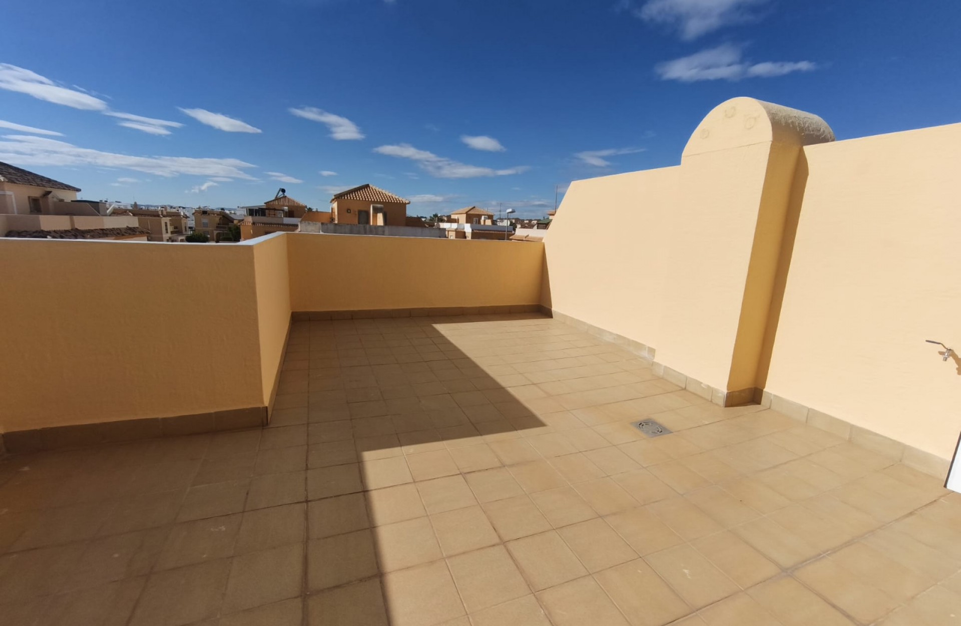 Casa cuádruple de 3 dormitorios con orientación este en Lo Marabu: piscinas privadas y comunitarias, terrazas acristaladas y solárium. Esta atractiva casa adosada de 3 dormitorios y 1,5 baños con orientación este se encuentra en la cotizada zona residencial de Lo Marabú, a solo 7 minutos a pie de una amplia selección de bares, restaurantes y dos grandes supermercados. Las vibrantes localidades de Quesada y Benijófar están a solo 5 minutos en coche, mientras que las playas de arena de la Costa Blanca Sur y los mejores campos de golf como La Finca y La Marquesa están a unos 10 minutos en coche. Con una superficie construida de 104m² distribuidos en dos plantas, esta casa ofrece una distribución práctica y bien proporcionada, perfecta para uso vacacional, vivir todo el año o invertir en alquiler. Características de la propiedad: 3 habitaciones dobles en el primer piso Dormitorio principal con armarios empotrados y balcón acristalado. Luminoso salón-comedor con acceso directo a una terraza delantera acristalada. Cocina independiente equipada 1,5 baños : baño familiar en la planta superior y aseo de invitados en la planta baja Amplio solárium privado , parcialmente acristalado, Jardín de baldosas con piscina privada Acceso a piscina comunitaria dentro del complejo residencial. Estacionamiento fuera de la carretera Esta casa combina un entorno tranquilo orientado al este con modernas terrazas acristaladas, piscinas privadas y comunitarias y un excelente acceso a los servicios locales, playas y golf, lo que la hace ideal como casa de vacaciones, residencia permanente o propiedad de inversión. Beneficios adicionales: Orientación este para sol de mañana. Espacio exterior de bajo mantenimiento, perfecto para el entretenimiento. Ubicado en una tranquila zona residencial con servicios a poca distancia. Gran potencial para ingresos por alquiler o como casa de vacaciones para cerrar y dejar Esta es una oportunidad fantástica para adquirir una propiedad versátil en una ubicación privilegiada en la Costa Blanca Sur. Ya sea que busque una residencia permanente bajo el sol, un refugio vacacional o una inversión inteligente, esta villa lo tiene todo. ¡Contáctenos hoy para concertar una visita o solicitar más información! ¿Por qué elegir Solmar Estates? Nos enorgullecemos de ser miembros de API (Agente de la Propiedad Inmobiliaria), una asociación con amplia experiencia en el sector inmobiliario español. Formar parte de API es una opción para los agentes inmobiliarios que incluye obligaciones de formación, experiencia y un extenso código ético. La membresía de API ofrece las máximas garantías a compradores y vendedores sobre nuestras operaciones y cualificaciones. Número de registro API: 00280. Para más información haga clic en el siguiente enlace https://tinyurl.com/4hnan8af