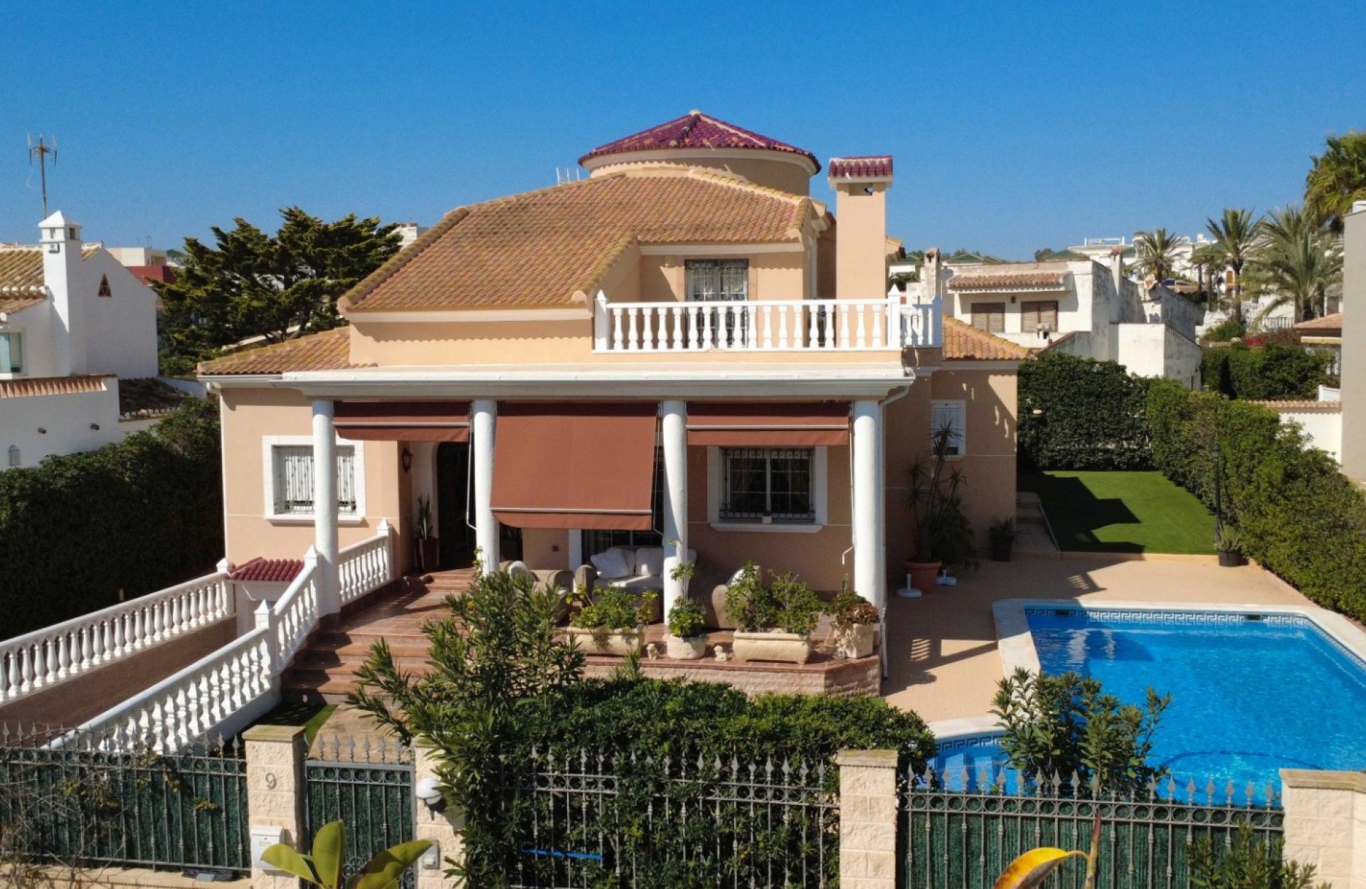 Ubicada en la prestigiosa urbanización Molino Blanco, esta espectacular villa de lujo ofrece espacio, privacidad y un estilo de vida mediterráneo elevado sobre una amplia parcela de 800 m². Con una superficie construida de 440 m², la vivienda se distribuye en dos plantas principales más un semisótano completamente acondicionado como vivienda independiente, ideal para invitados o familiares. La propiedad dispone de seis amplios dormitorios dobles y cinco baños completos, perfecta para familias numerosas o quienes disfrutan recibiendo visitas. Cada planta cuenta con luminosos salones-comedor, creando distintos espacios para relajarse y socializar. En el corazón de la vivienda encontramos una gran cocina independiente con acceso directo al jardín, ideal tanto para el día a día como para reuniones sociales. El exterior es uno de los grandes atractivos de la propiedad. Una impresionante piscina privada rodeada de un cuidado jardín ofrece un entorno tranquilo y exclusivo para disfrutar del sol mediterráneo. Además, cuenta con un acogedor porche y pérgola con barbacoa, perfecta para momentos inolvidables. La vivienda está equipada con calefacción central, aire acondicionado y sistema de alarma completo. Ubicada en un complejo residencial exclusivo, la comunidad dispone de mantenimiento continuo, incluyendo jardinería profesional durante todo el año.