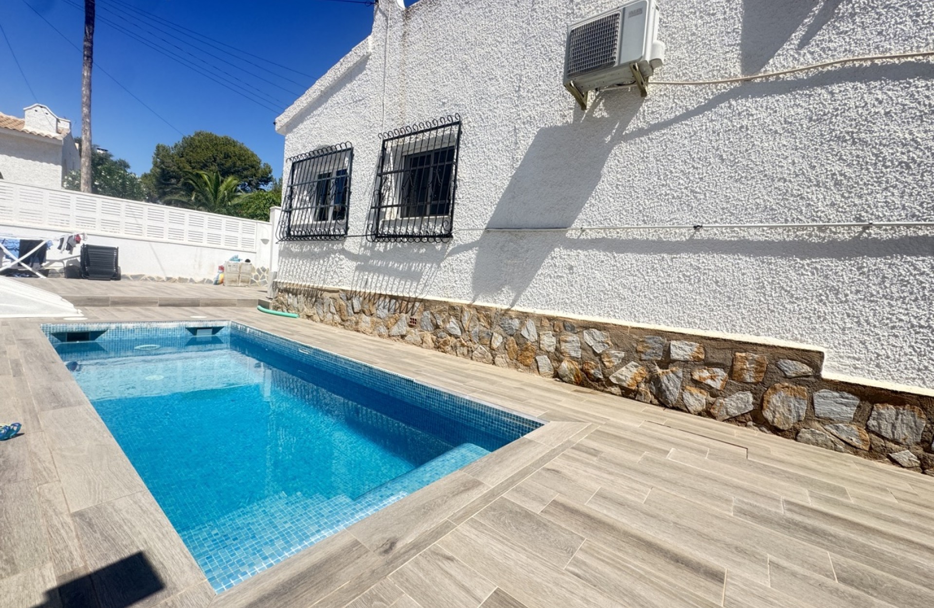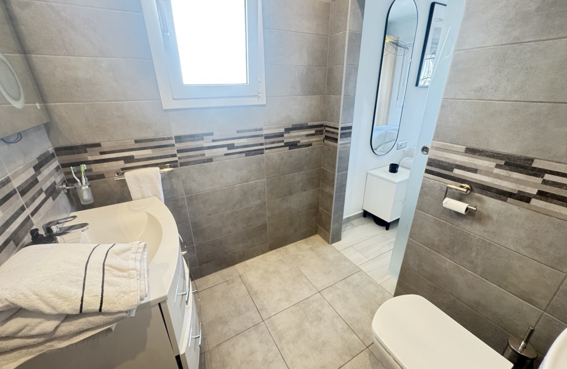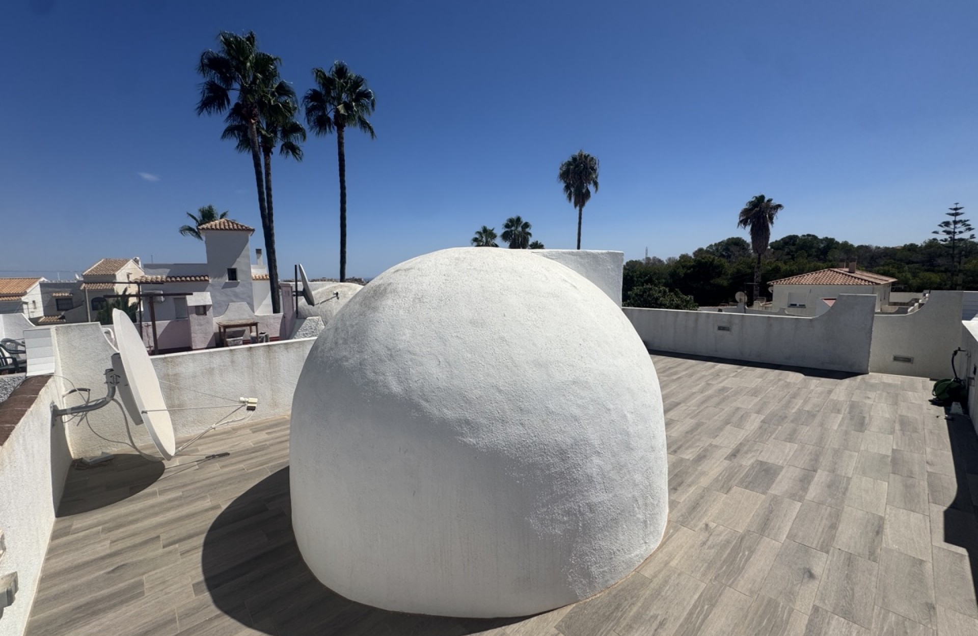 This beautifully refurbished detached villa is nestled in the popular Blue Lagoon area near Villamartin, offering a perfect blend of luxury and tranquility. - Fully refurbished: This villa has been completely renovated to high standards, featuring modern finishes and stylish decor. - Large open-plan kitchen: Perfect for entertaining, the kitchen is spacious and well-equipped, flowing seamlessly into the living area. - 2 bedrooms: Each bedroom boasts an en-suite shower room, providing luxury for residents and guests. - Private pool: Enjoy relaxing in the sun or cooling off in the private pool, perfect for warm days. - Roof terrace: Take in the stunning views of the surrounding area from the roof terrace, ideal for al fresco dining or simply enjoying a glass of wine. IDEAL FOR: - Families: With its spacious layout and private pool, this villa is perfect for families looking for a relaxing retreat. - Couples: The villa's luxurious finishes and quiet setting make it an ideal getaway for couples. - Investors: With its prime location and stunning features, this villa is an attractive opportunity for investors looking to rent or sell. LOCATION: - Blue Lagoon: This popular area offers a range of amenities, including golf courses, restaurants, and shops. - Villamartin: A charming town with a range of amenities, including restaurants, shops, and leisure facilities. - Beaches: The villa is just a short drive from the beautiful beaches of the Costa Blanca. Don't miss the opportunity to own this stunning detached villa in Blue Lagoon. Contact us today to arrange a viewing and make this property your dream home!