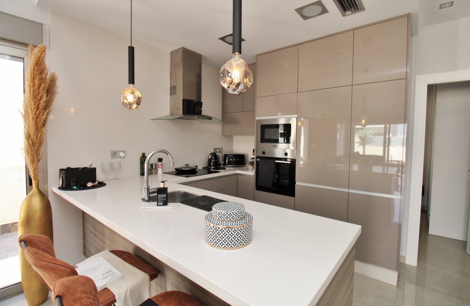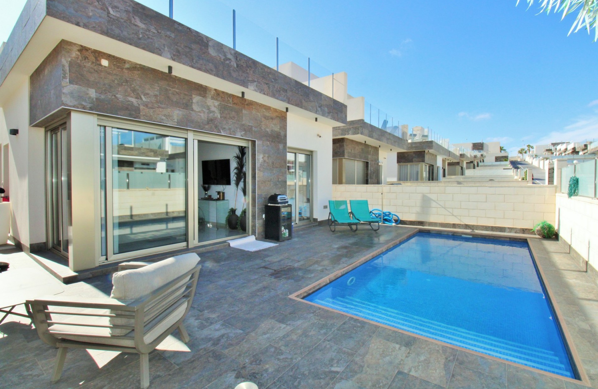 Nestled in the sought-after Pink Paradise development of Villamartin, this newly built detached villa offers the perfect blend of modern elegance and everyday comfort, all on a single level. Designed for effortless living, it boasts stylish interiors, thoughtful features, and inviting outdoor spaces. Step outside to a beautifully tiled garden, where a private pool awaits—ideal for soaking up the sun or unwinding in a tranquil setting. A large private solarium provides even more outdoor space, offering views of the Torrevieja salt lakes, perfect for entertaining or simply enjoying the peaceful surroundings. For added convenience and security, the home is equipped with electric shutters throughout. Inside, the villa is bright and spacious, with a welcoming living area that features ducted air conditioning for year-round comfort. The open-plan kitchen is fully fitted and seamlessly integrated, making it an ideal space for cooking, dining, and hosting guests. There are three generously sized double bedrooms, each with air conditioning, fitted wardrobes, and direct garden access. The master bedroom is a serene retreat with a private en-suite bathroom with walk-in shower, while an additional bathroom serves the remaining two bedrooms, ensuring convenience for family and guests alike. Sold part-furnished, this home provides a stylish foundation for new owners to add their personal touch. Whether you're looking for a permanent residence or a luxurious holiday getaway, this villa offers a perfect balance of indoor and outdoor living. Don't miss the chance to make this stunning property your own—contact us today to arrange a viewing!