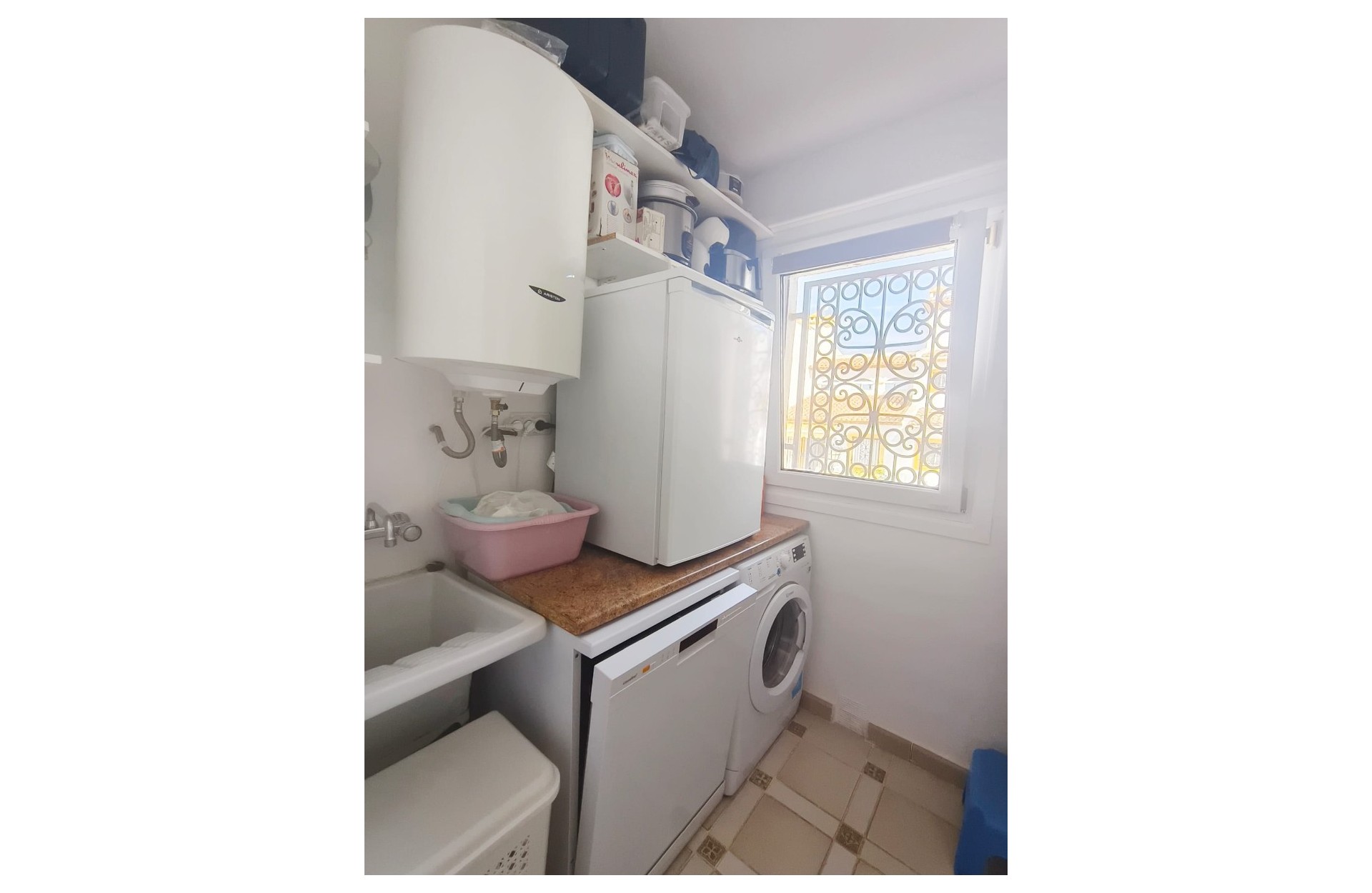 Dream home ready to move into in Villamartín, Orihuela Costa! Imagine enjoying the sun all day long on a large plot with double exposure to the east and west, in a secure condominium with a communal swimming pool and parking. This Spanish terraced house, which is sold furnished with appliances, offers 3 bedrooms, 2 bathrooms, air conditioning and tasteful décor... All you have to do is move in! Just 2 minutes from shops, 2 minutes from Villamartín golf course and less than 10 minutes from La Zenia beach, it offers the perfect balance between tranquillity and convenience. Comfort, charm and an idyllic setting: your new life starts here! For more information or to arrange a viewing, please do not hesitate to contact us.