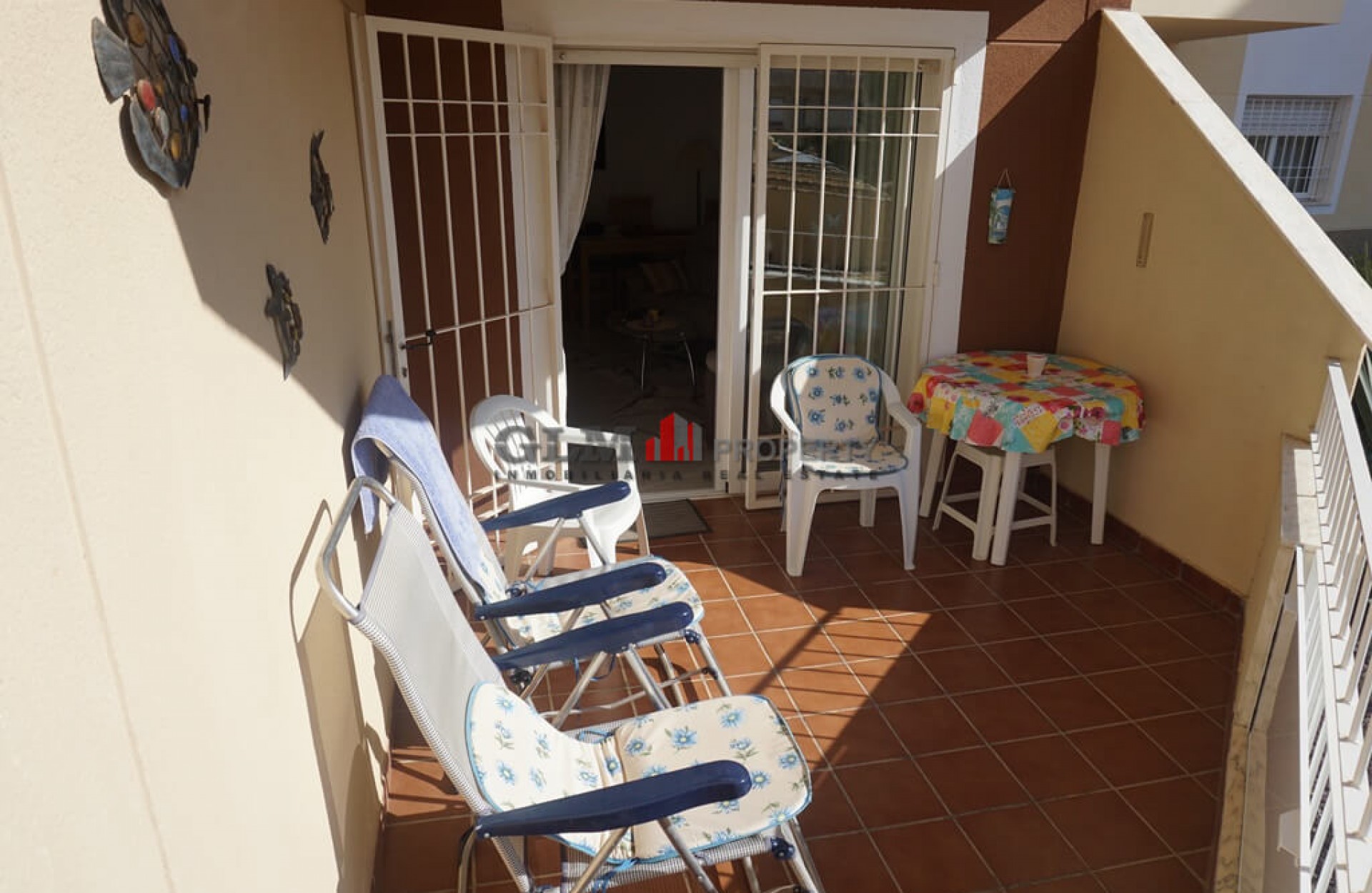 Ground floor apartment on enclosed residential. The property comprises of lounge/dining area, independent equipped kitchen with internal patio, 2 bedrooms, the master bedroom with terrace, 1 bathroom and a spacious terrace overlooking the communal pool. An allocated parking space is included in the price. Located approximately 7 minutes walk from the central square with supermarket, shops, bars restaurant, and 10 minutes walk to the sea.