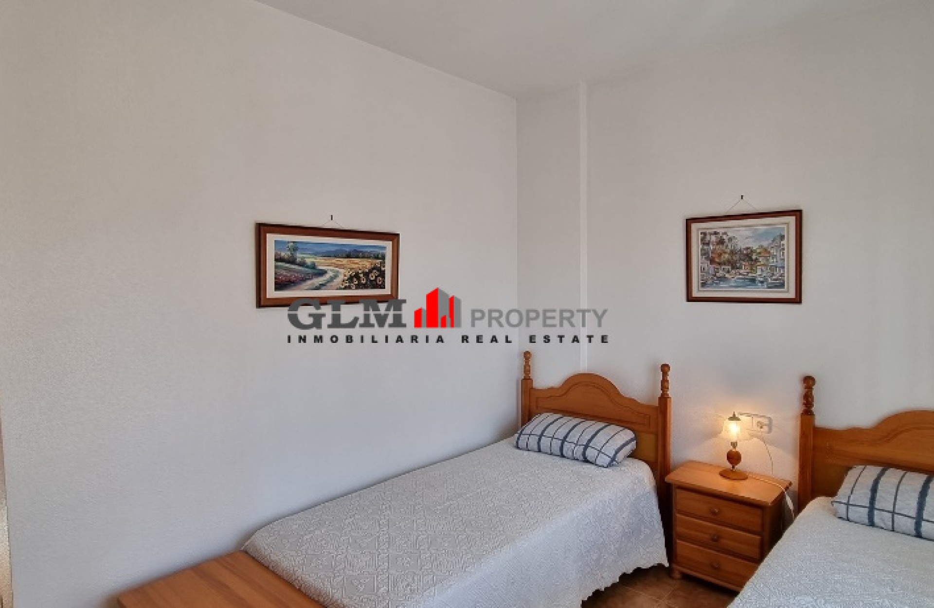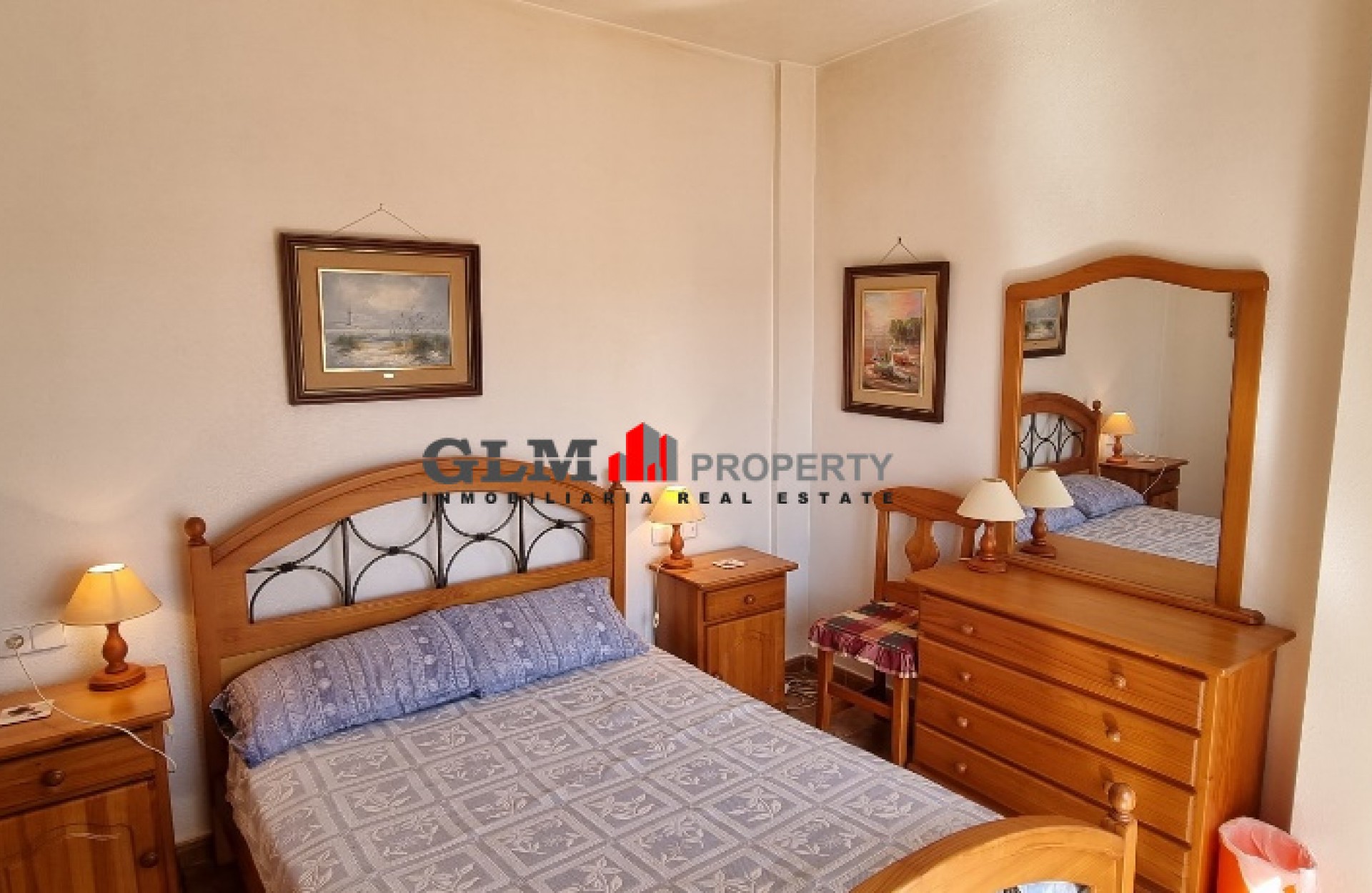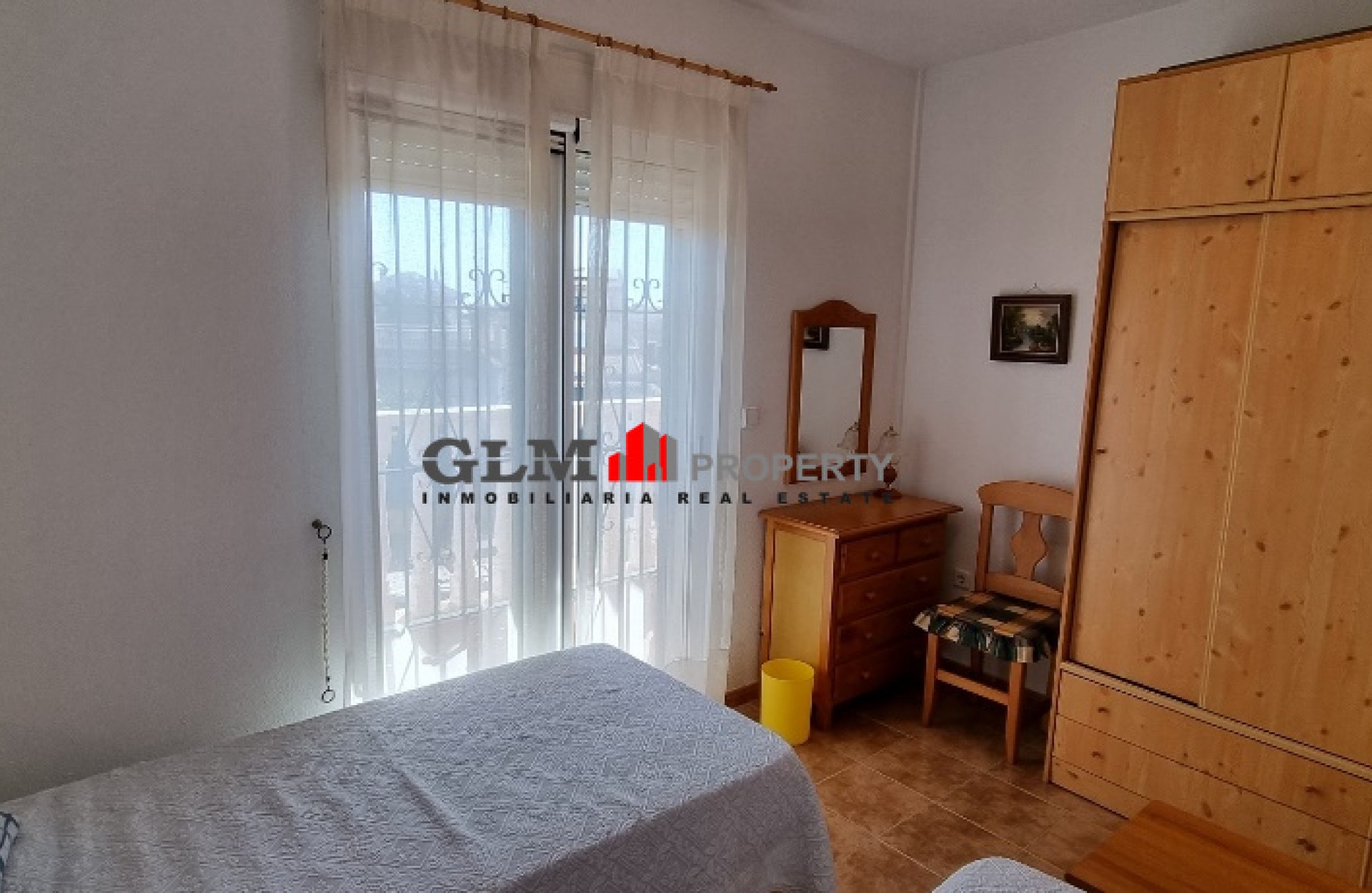 Semidetached Villa with front and side garden comprise on the ground floor as you come in the front door nice living dining room, fully fitted kitchen. 1 Bedroom on the ground floor and a bathroom. Upstairs there are 2 more bedrooms and another bathroom. The main bedroom has access to a large terrace. The Property is situated in Las Lomas del Rame, close to Serena Golf Course and only 5 minutes drive to Los Alcázares Town.