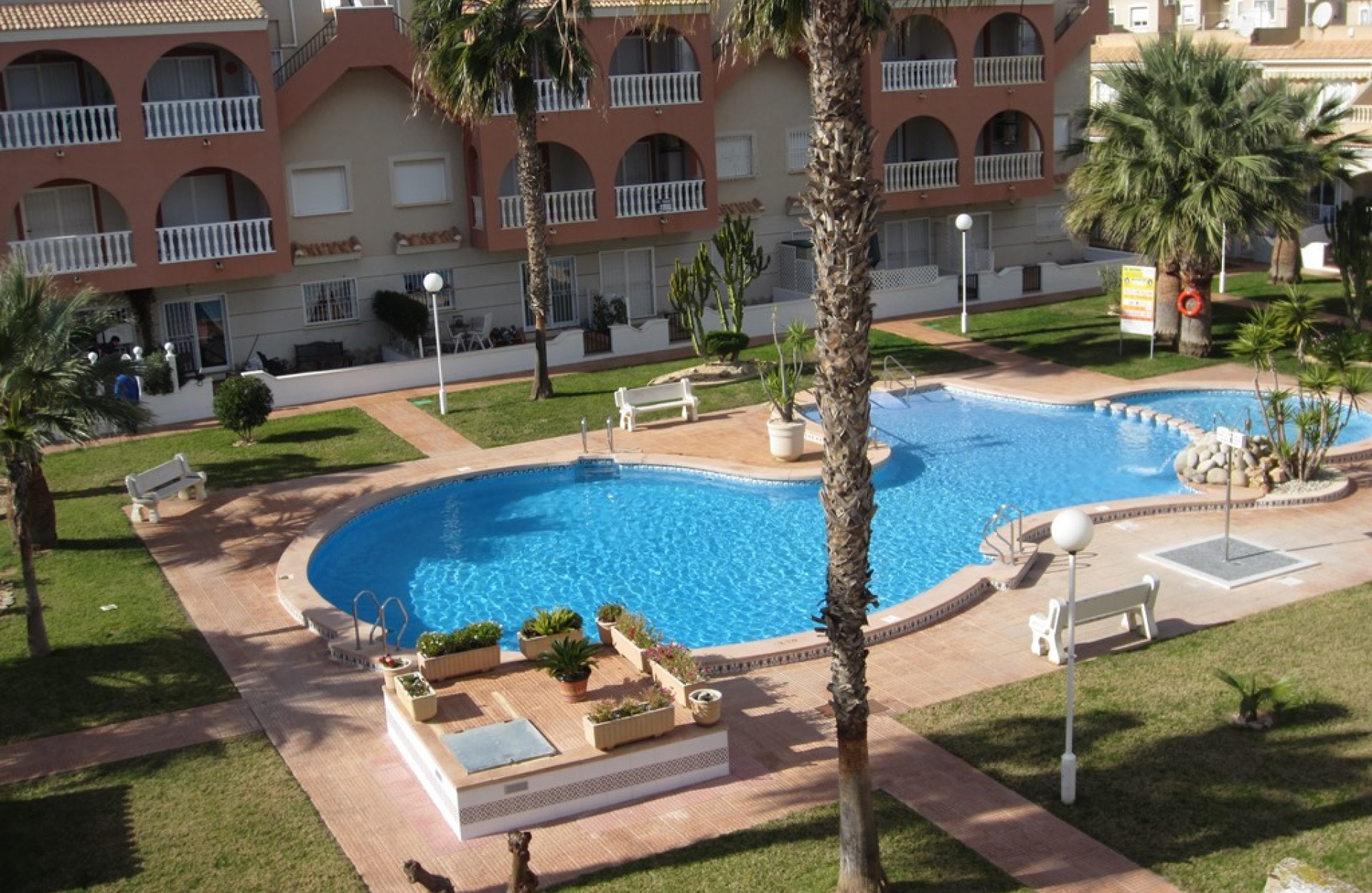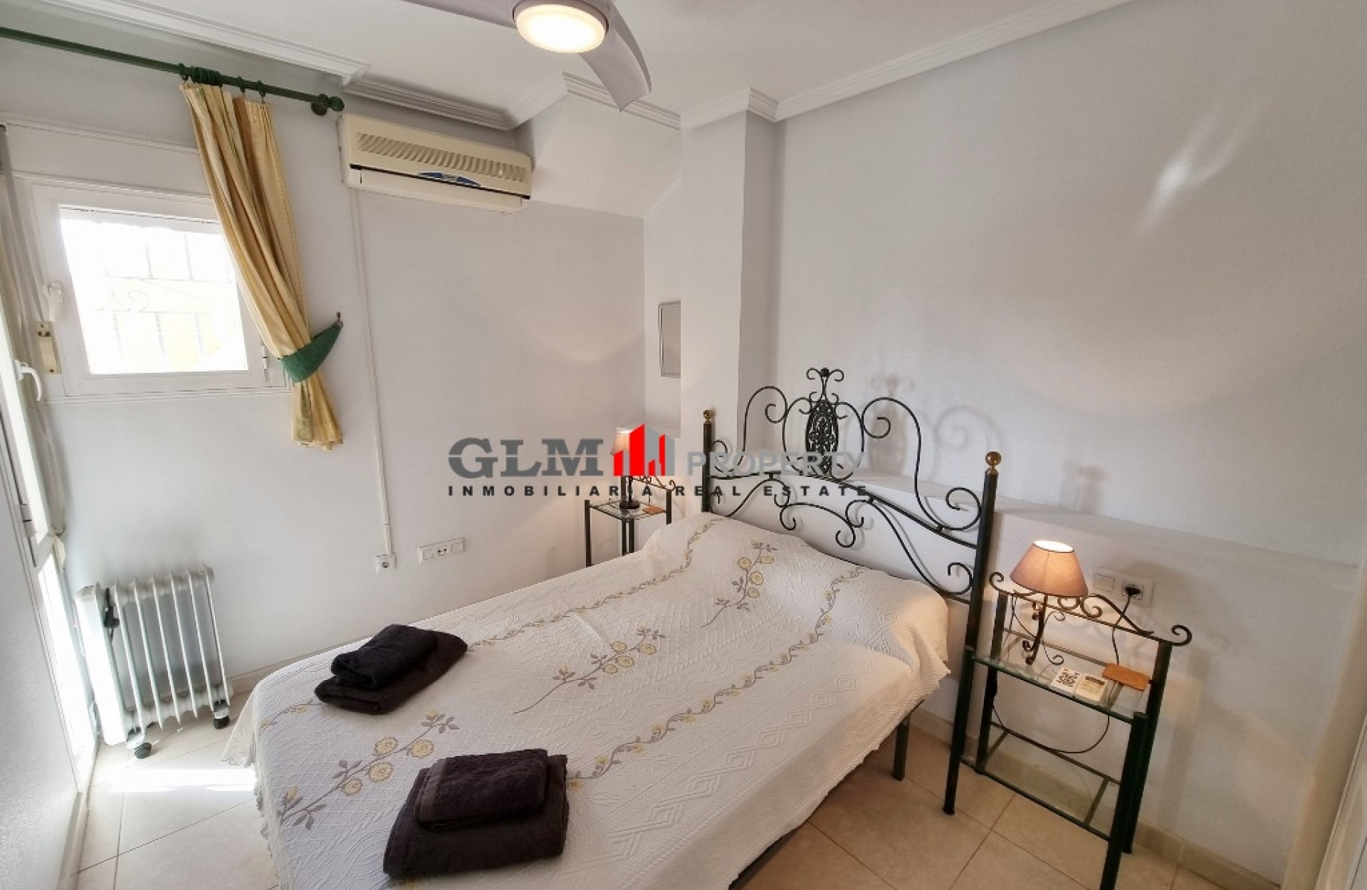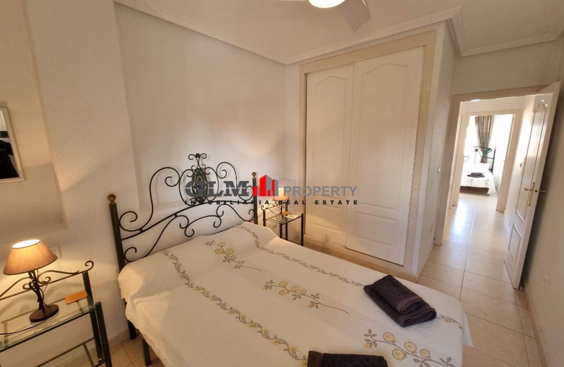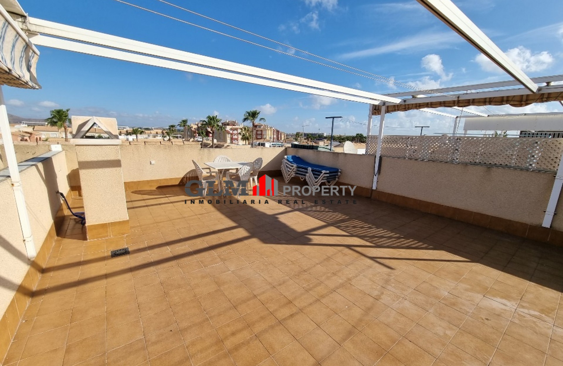 South facing Penthouse located on Residential El Divino with 2 communal pools. The property has a spacious a living room leading to the balcony. The apartment comprises of fully fitted kitchen with all whitegoods, 1 bedroom with double bed, second bedroom with 2 single beds, both with fitted wardrobes and 2 bathrooms. The balcony, leads to the rooftop solarium with fitted awnings. This property is beautifully presented and offered fully furnished.Walking distance to all amenities including restaurants, bars, shops and the beach. The gated community boasts of 2 large communal swimming pool and garden areas.Located only a few minutes walk to the square, which is filled with a wide range of restaurants and bars, supermarket, banks and shops and less than 10 minutes walk to the beach.