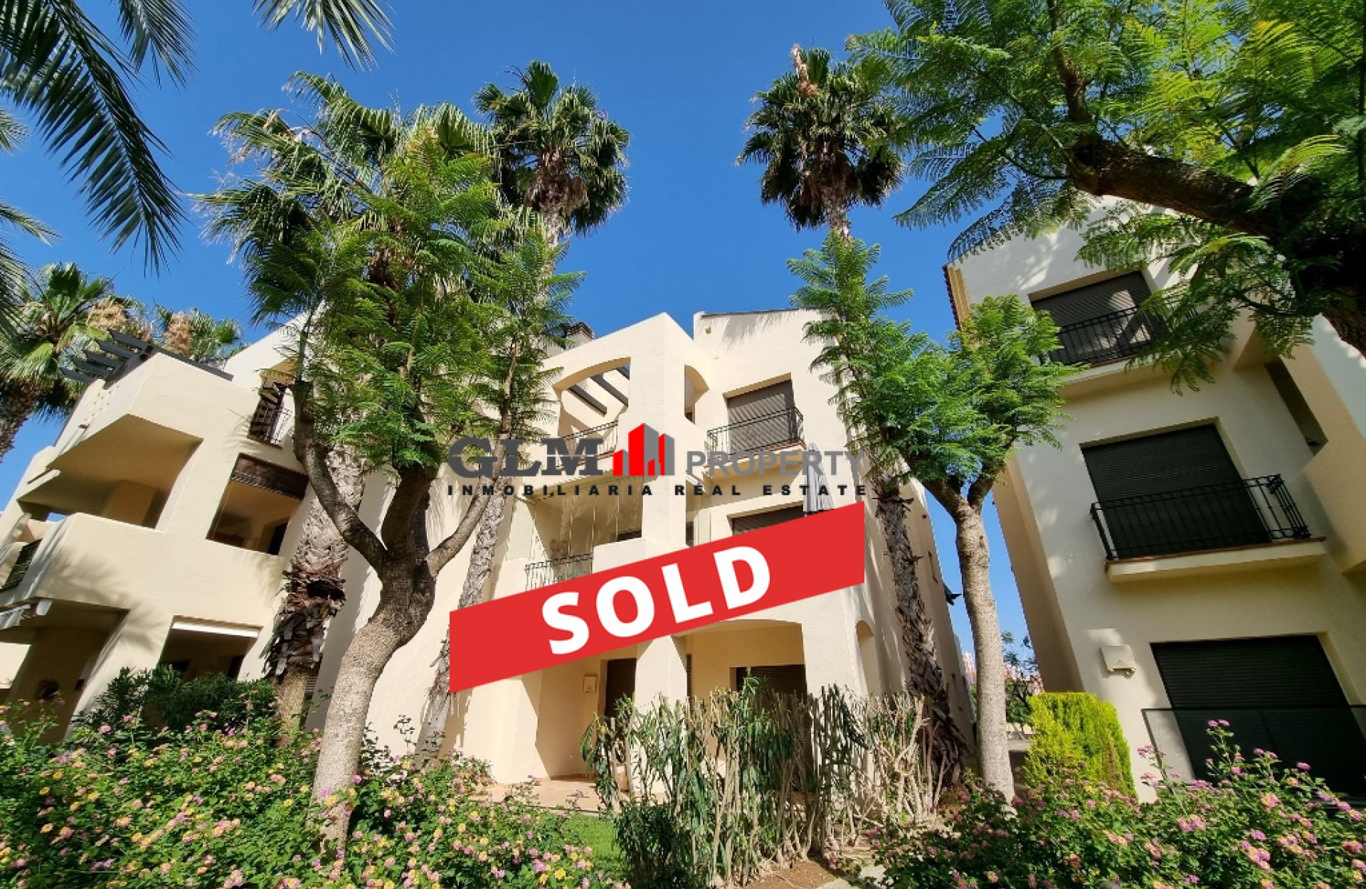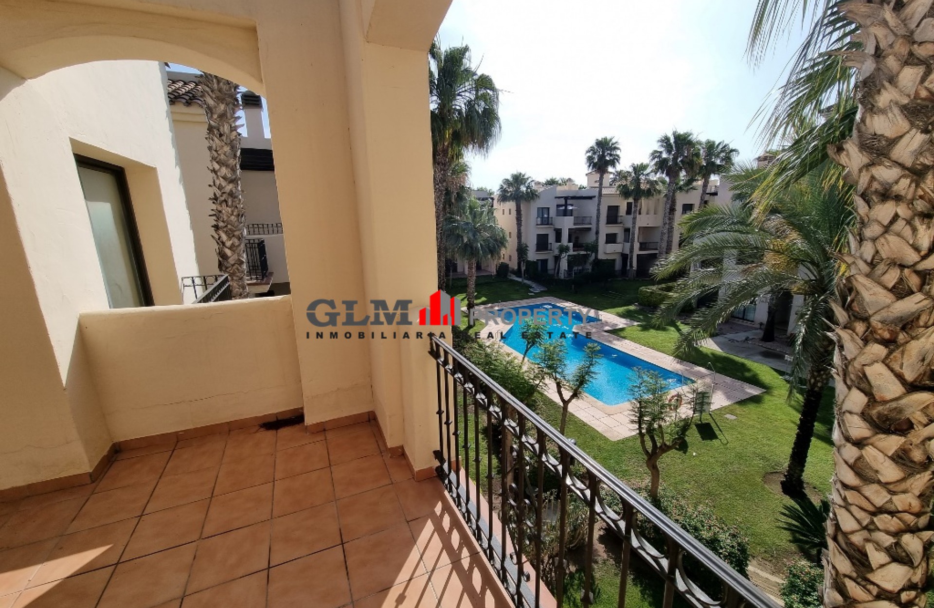 Penthouse apartment (2nd floor) on Roda Golf Resort. The property comprises of lounge/dining area, American kitchen, 2 bedrooms and 2 bathrooms, and a balcony with stairs that lead up to the ample solarium. An underground parking space and store room are included in the price. The urbanisation offers a 18 hole golf course with club house, and 24hrs security. Located a few minutes drive from the beaches in Los Alcázares, and supermarkets, shops, restaurants, etc.