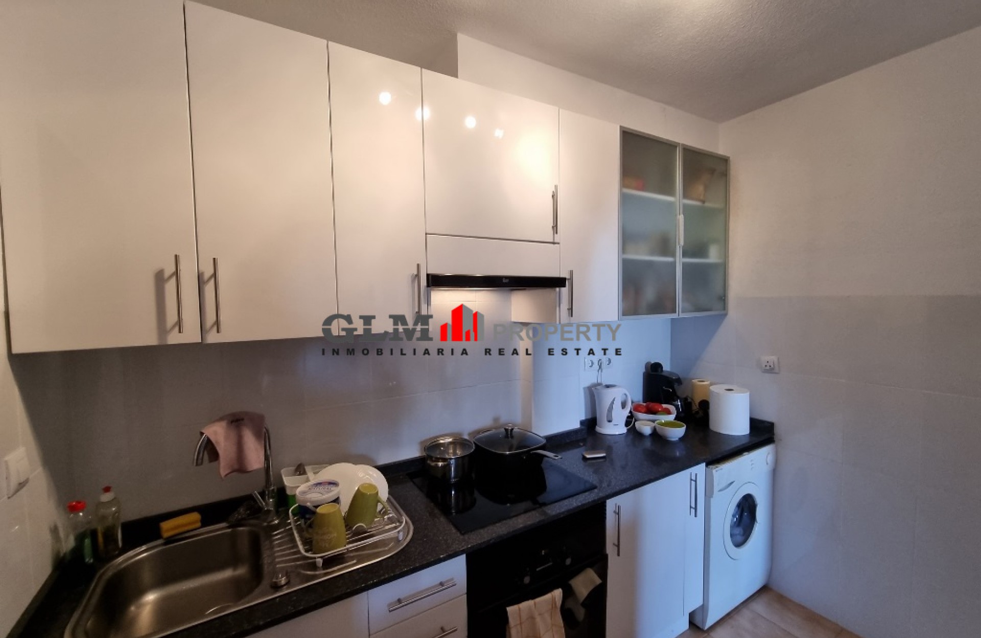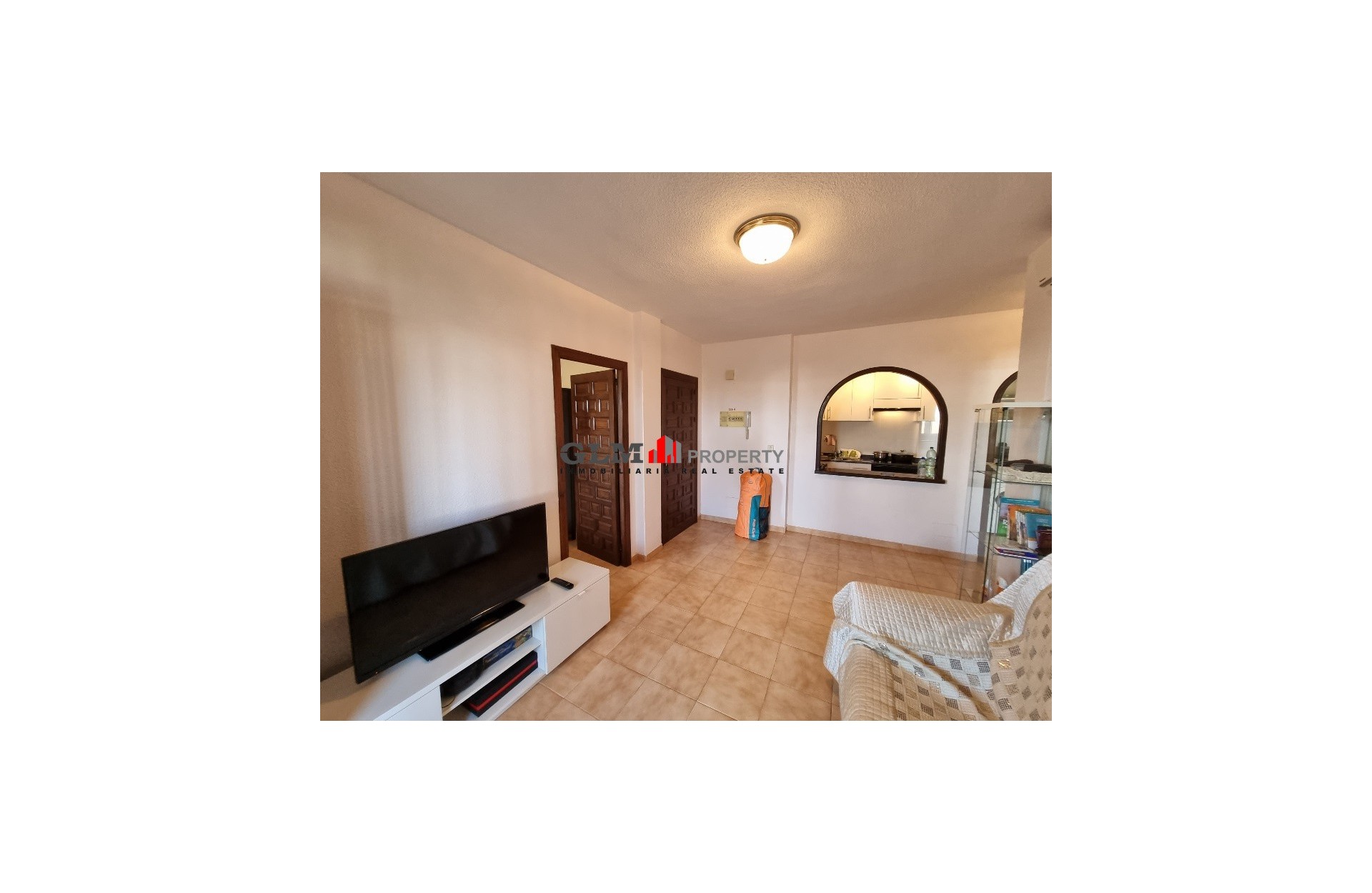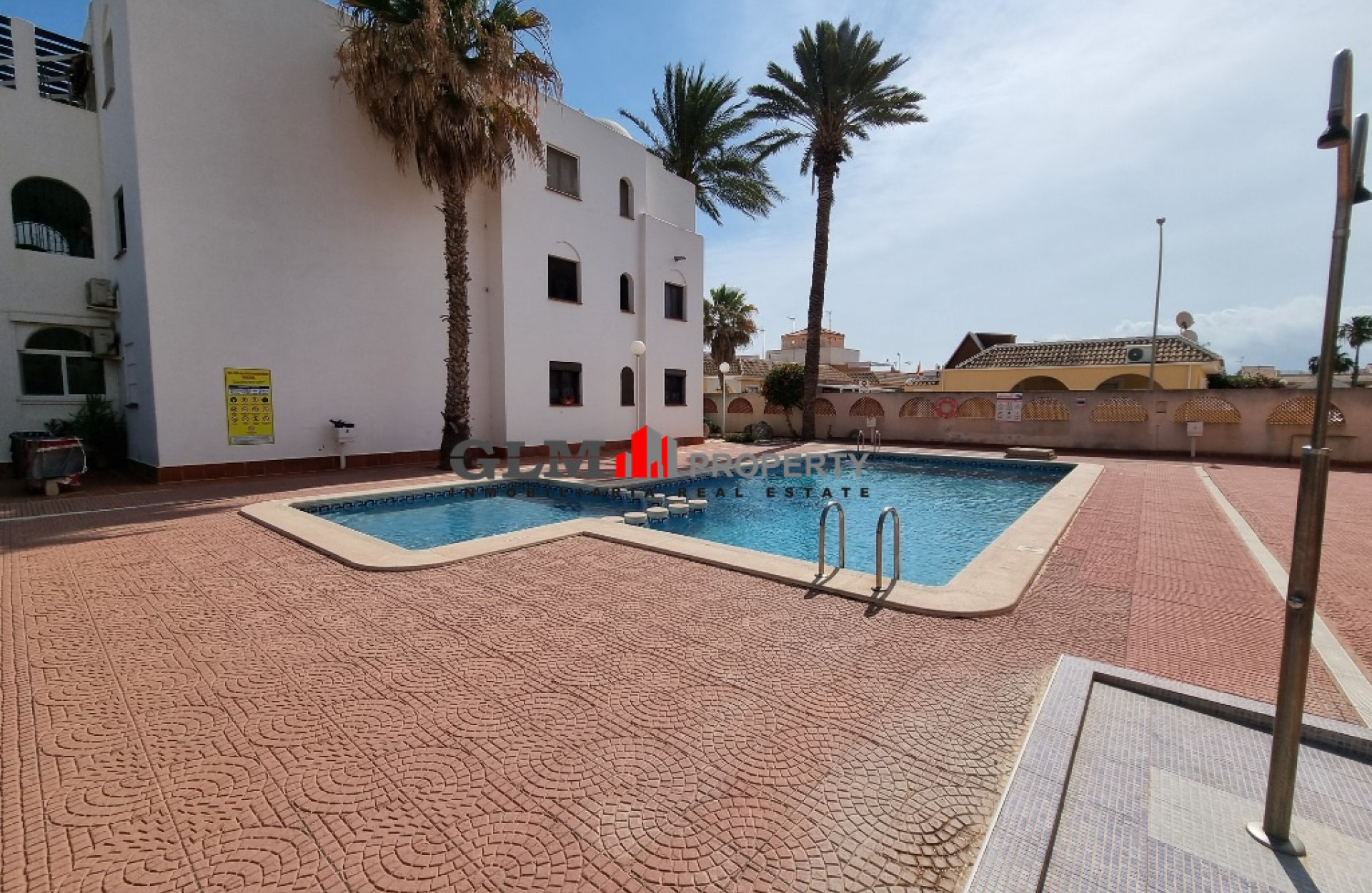 First floor apartment with communal pool. The property comprises of lounge/dining area with terrace, new kitchen with small pantry, 2 bedrooms, 1 with direct access to the terrace, and a bathroom. The property is sold furnished and located in a small Residential with communal Pool in the center of the Oasis urbanisation. Walking distance to the promenade of Mar Menor and other services such Supermarket, banks, gas station, schools, restaurants and others.