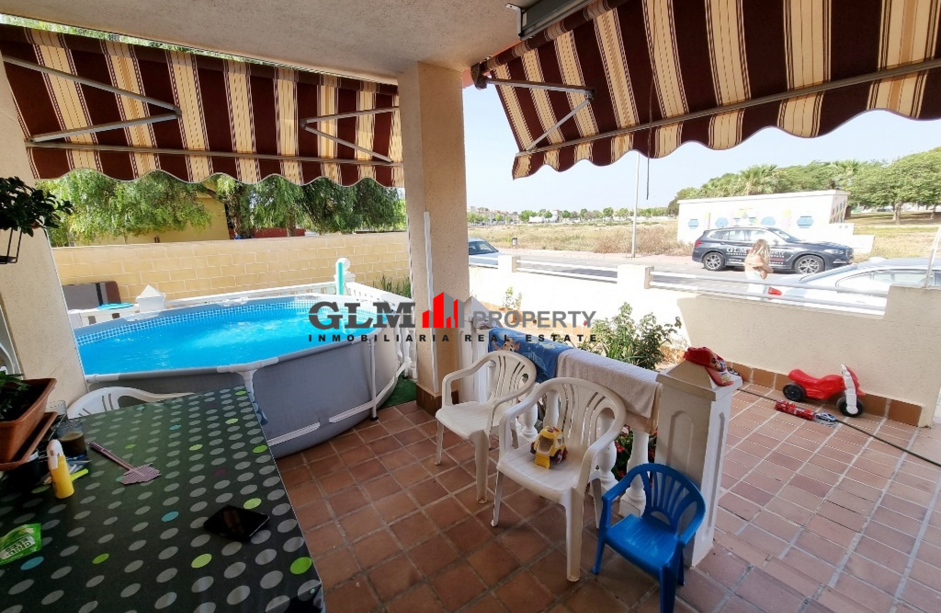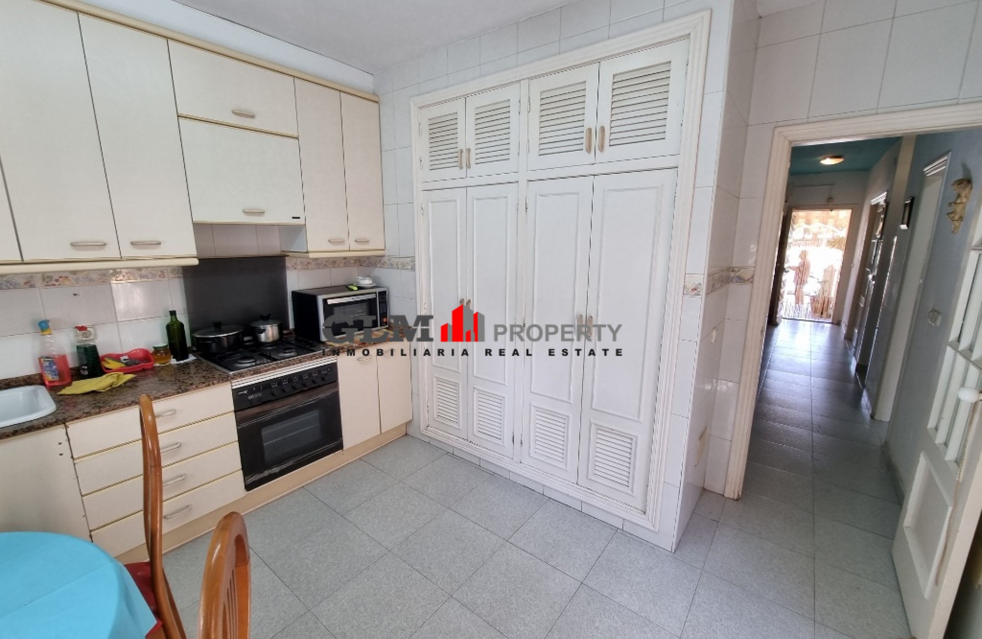 Detached house all on ground floor with garden around on a 508 m2 plot with double garage of 92 m2. Property comprises of spacious living/dining area, fully fitted kitchen, 4 bedrooms and 2 bathrooms. From the kitchen you have access to a pack patio with storeroom. The house is overlooking a park and in a quiet but central area with walking distance to supermarkets, shops, cafes, restaurants, banks and the beach. Counts with air-conditioning and heating. Property to be sold unfurnished.