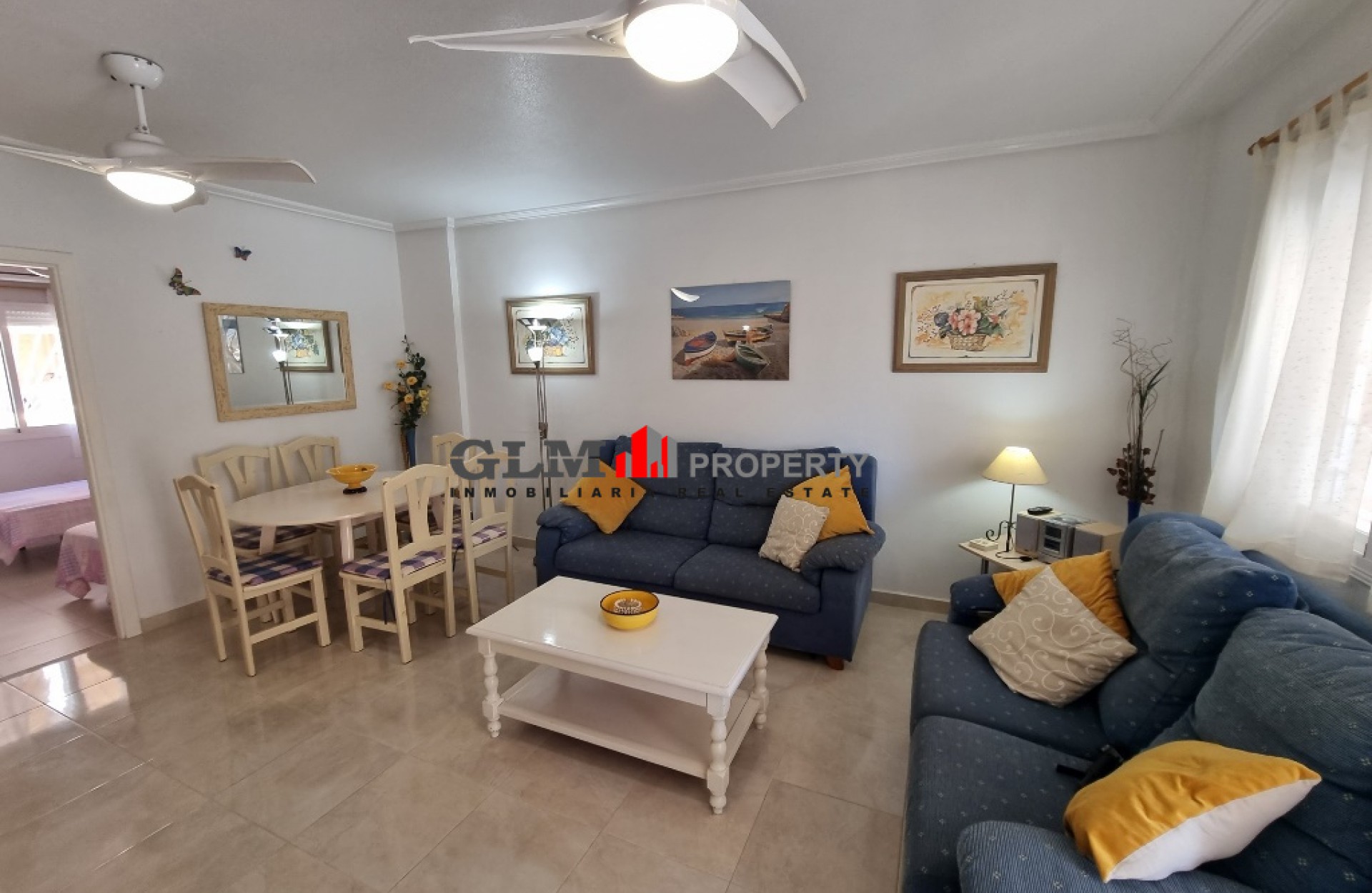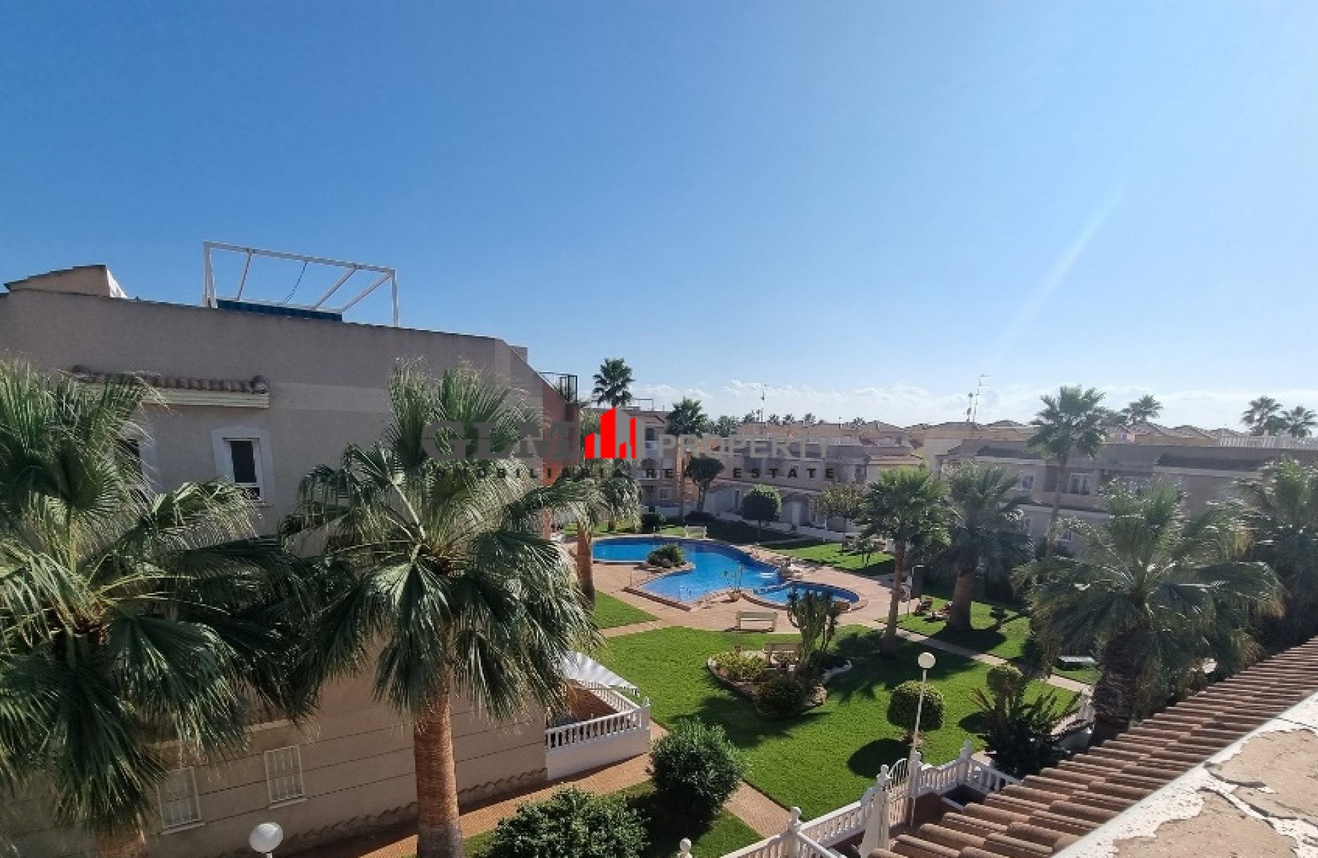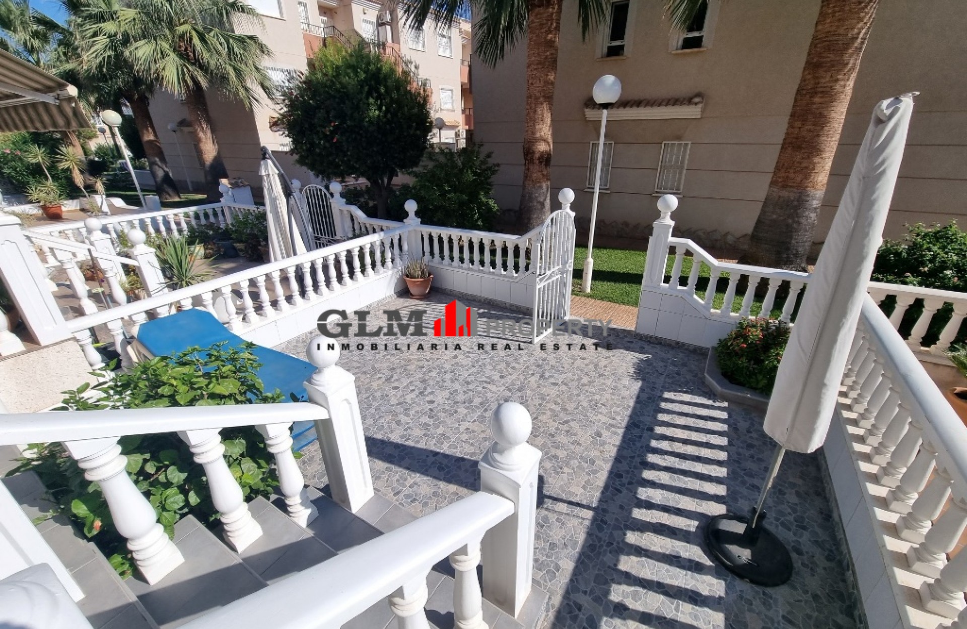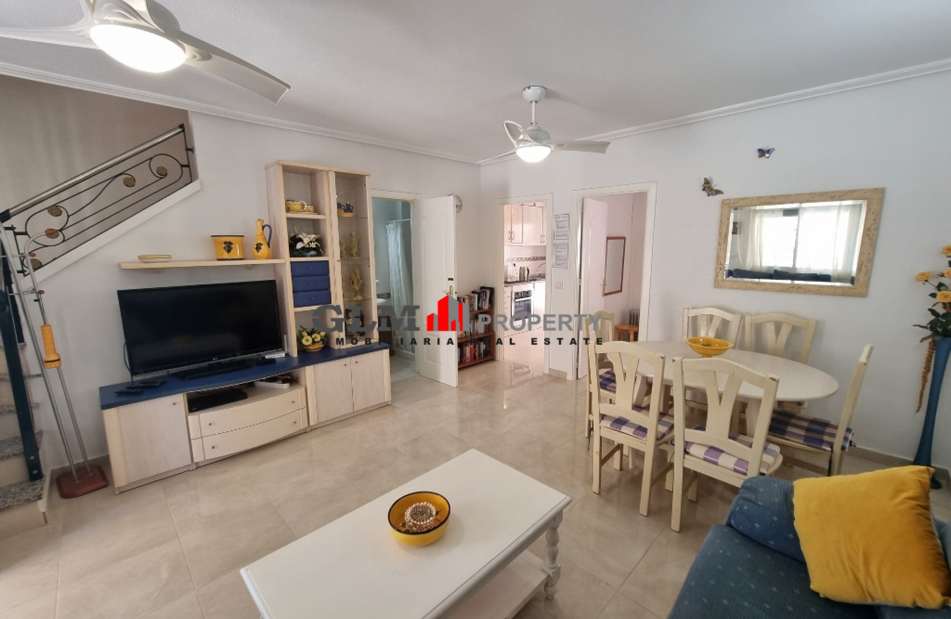 South Facing townhouse located on El Divino complex, with 2 large community pools surrounded by well maintained gardens. The property comprises on the ground floor of a large living/dining room, independent kitchen, double bedroom, shower room, porch and 2 terraces, one to the front and one to the back. The back terrace includeds a Storeroom. Upstairs there are 2 double bedrooms with balconies and a large bathroom. Stairs from the main bedroom balcony lead up to the solarium. The property benefits from air conditioning, Radiators and is sold fully furnished. Located on El Divino Residential, only a few minutes walk from the square with shops, restaurants and bars, and the beach.