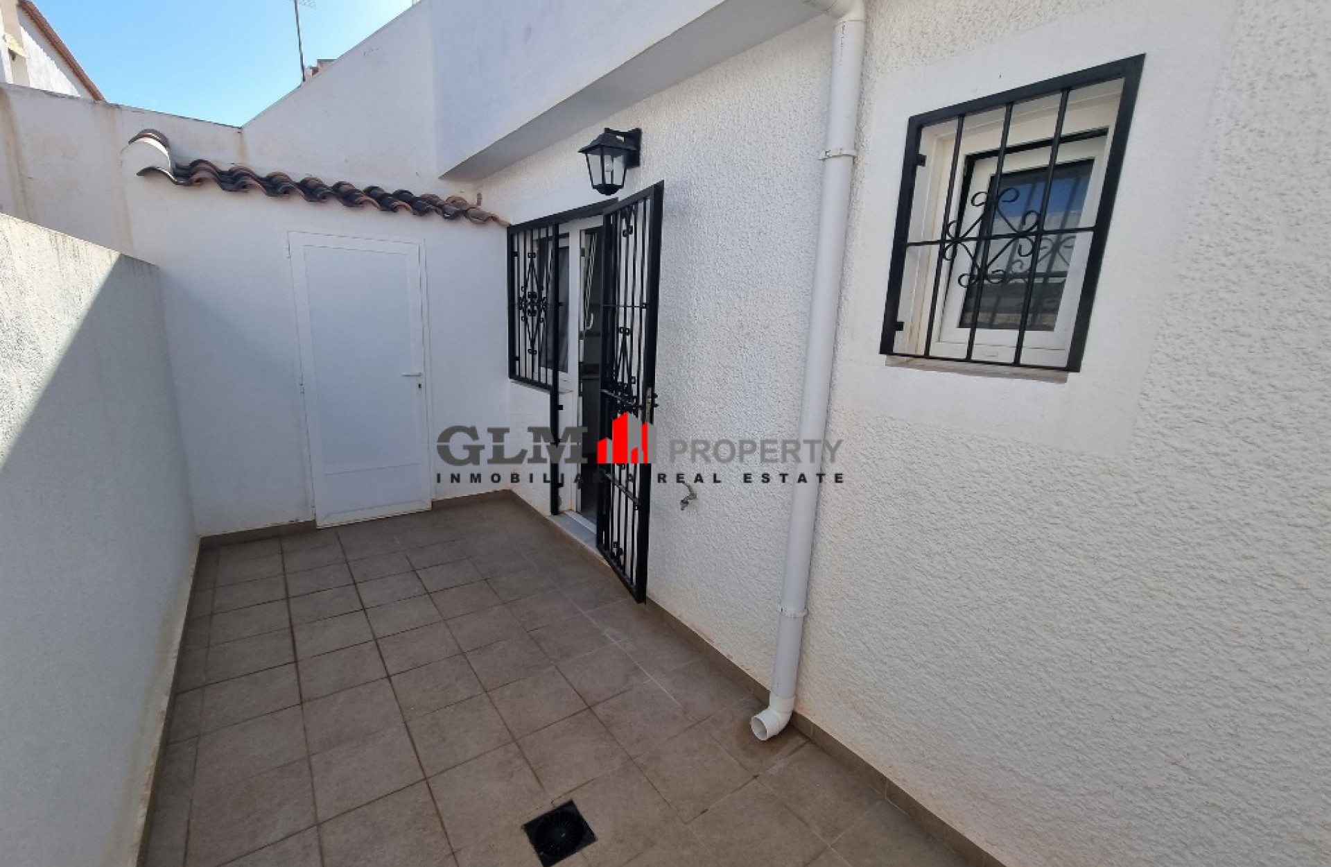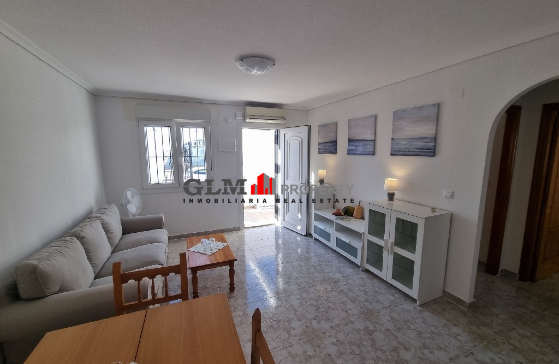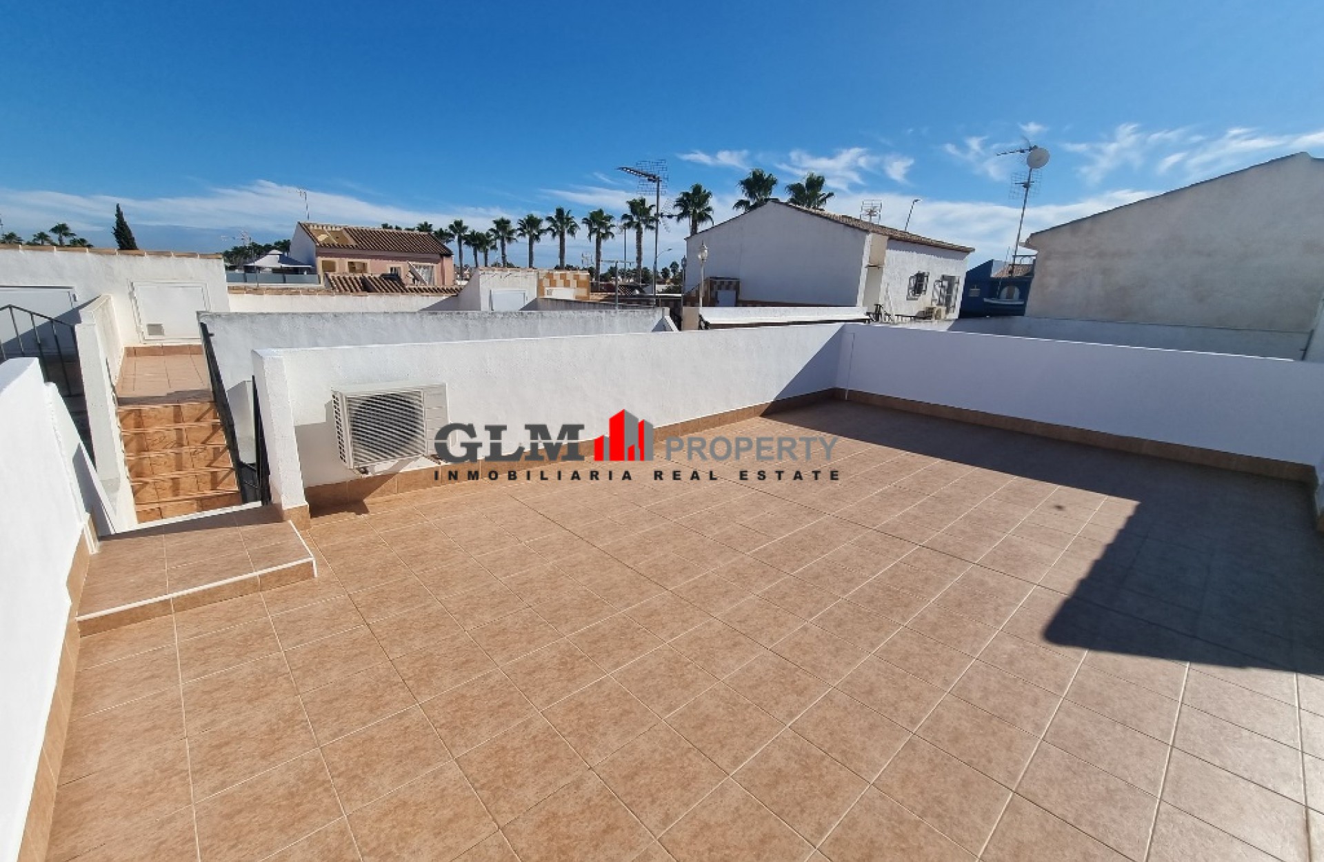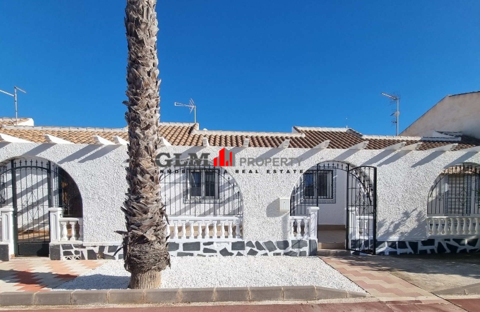 South facing impeccable Bungalow located in Los Narejos. The property comprises of Front terrace leading to the living room, Kitchen, 2 bedrooms and a bathroom. Through the back patio you have access to staircase leading up to the 45 m2 solarium.The property has been well maintained, all windows have been replaced and is being sold fully furnished (furniture has been bought recently). Walking distance to the promenade of Mar Menor and other services such Supermarket, banks, schools, restaurants and others.