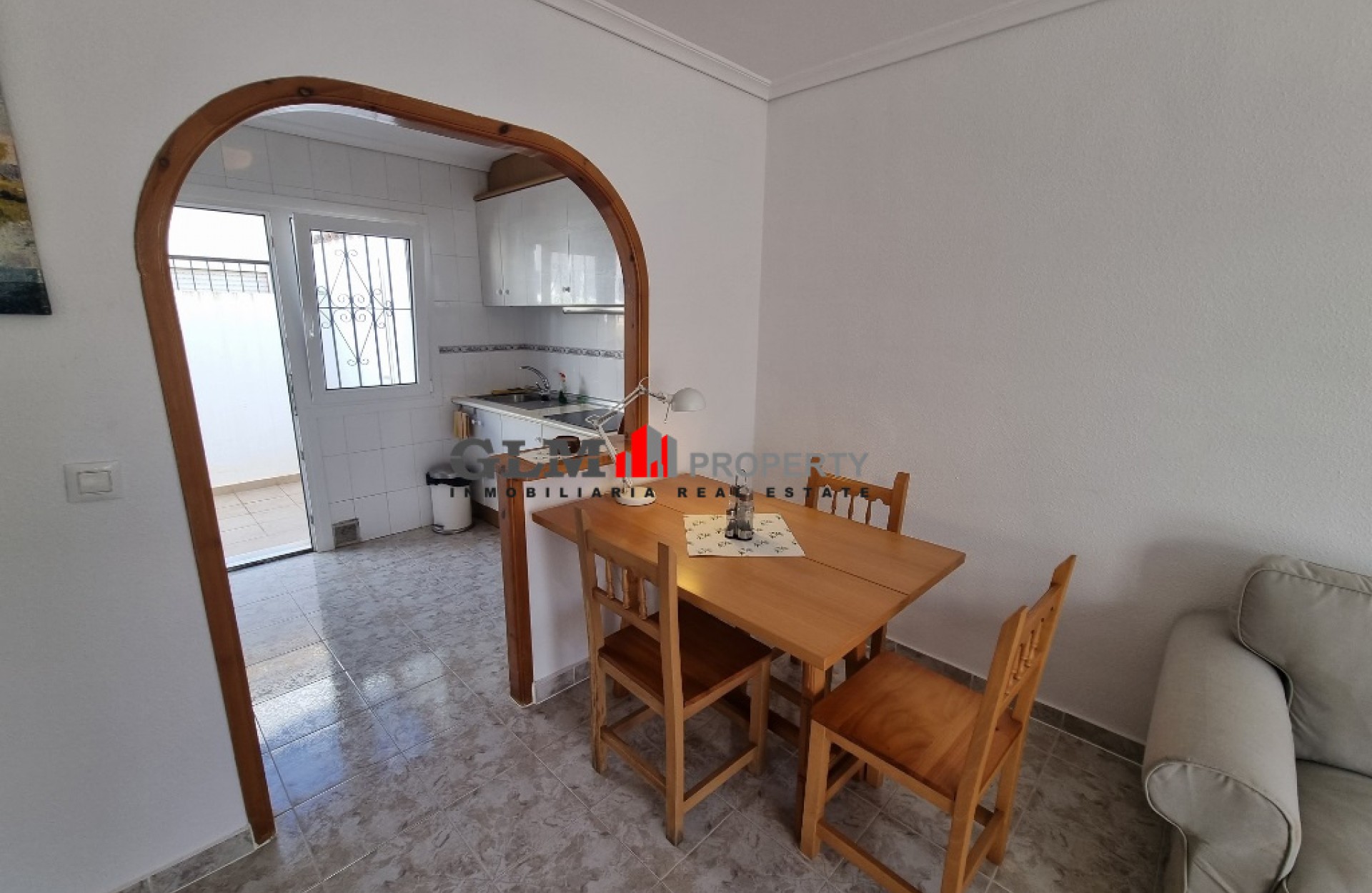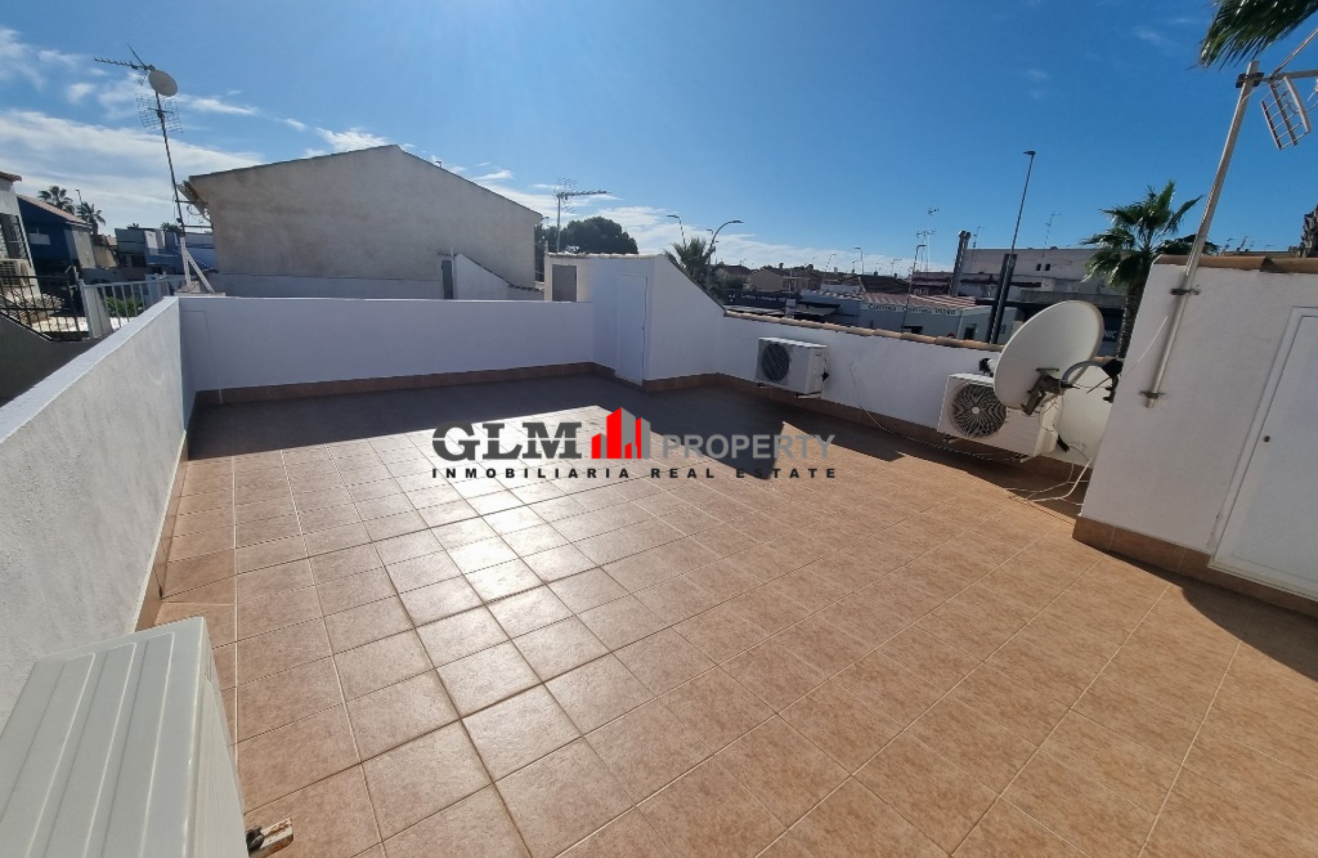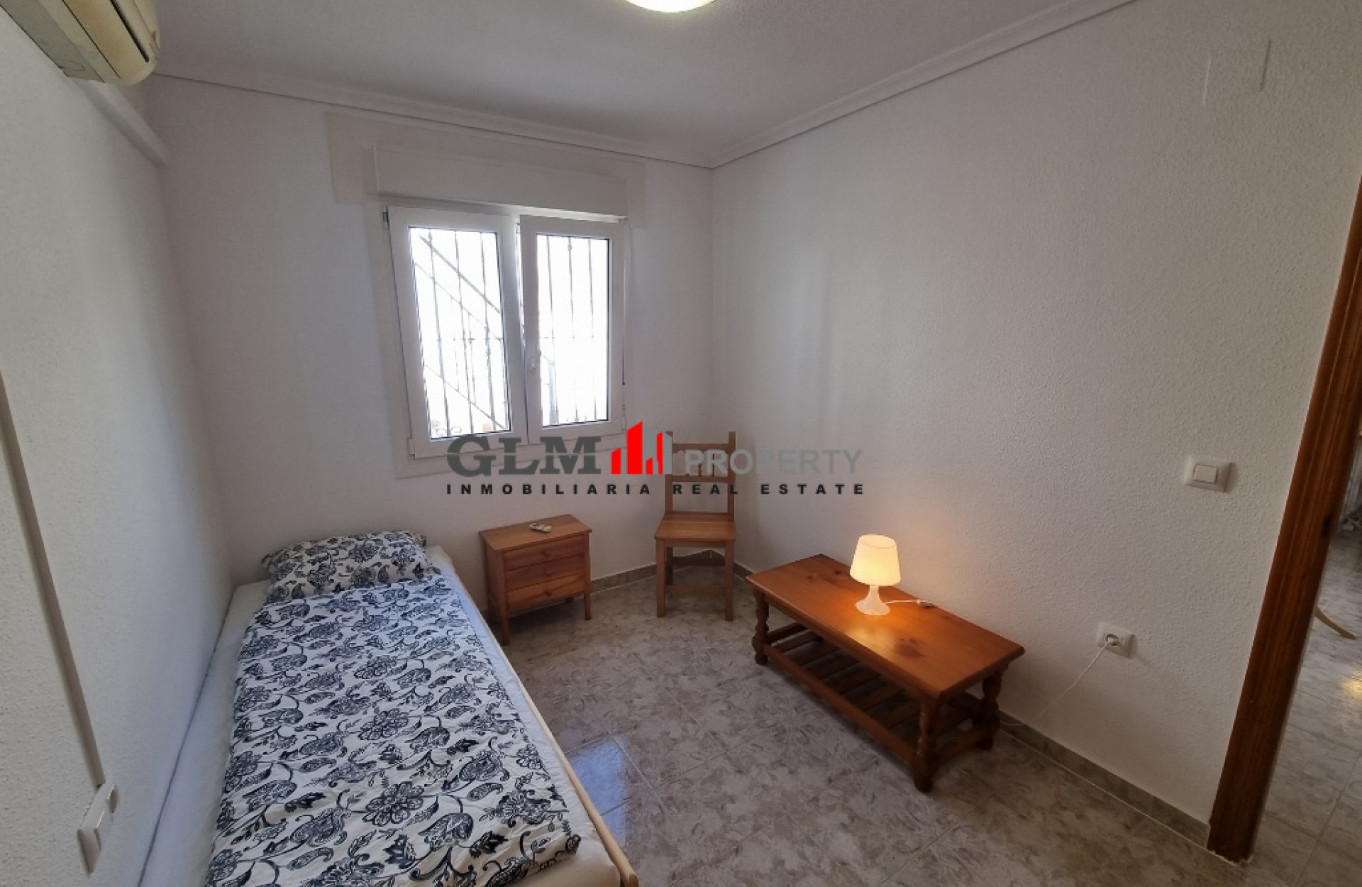 South facing impeccable Bungalow located in Los Narejos. The property comprises of Front terrace leading to the living room, Kitchen, 2 bedrooms and a bathroom. Through the back patio you have access to staircase leading up to the 45 m2 solarium.The property has been well maintained, all windows have been replaced and is being sold fully furnished (furniture has been bought recently). Walking distance to the promenade of Mar Menor and other services such Supermarket, banks, schools, restaurants and others.