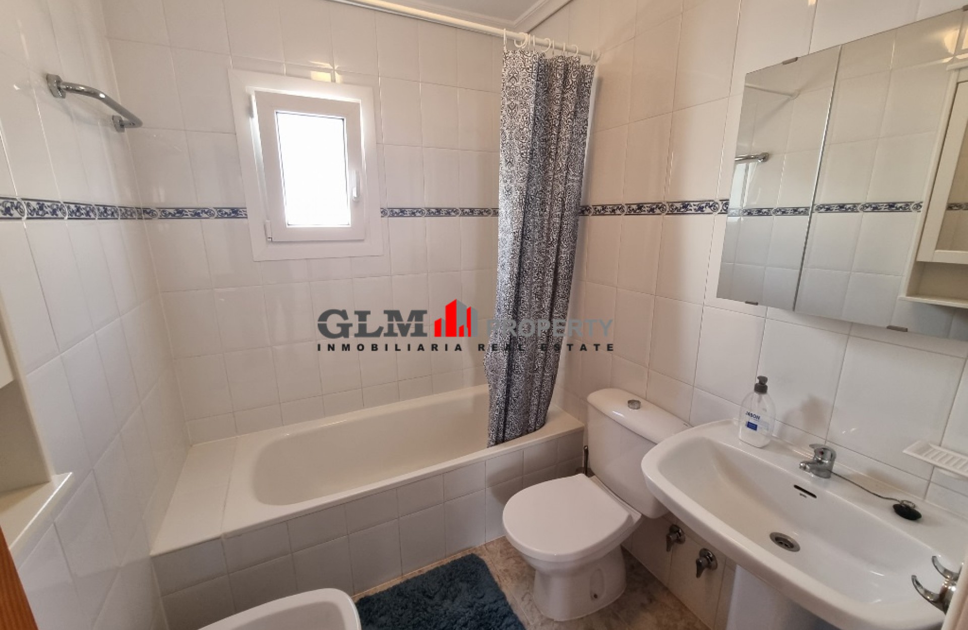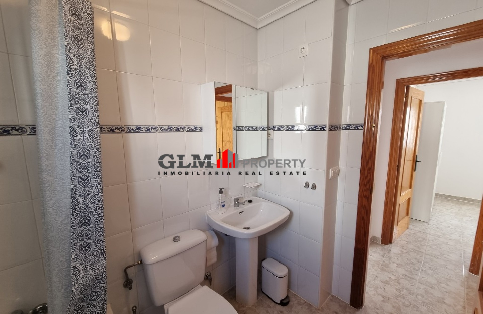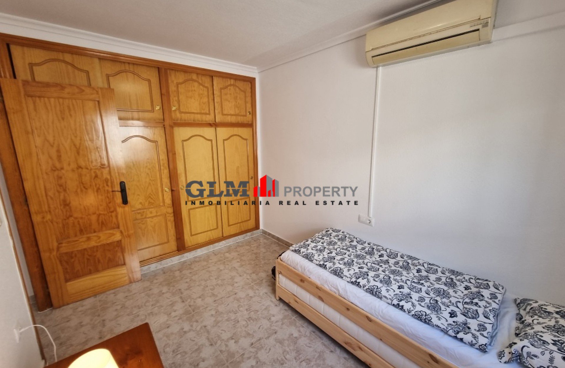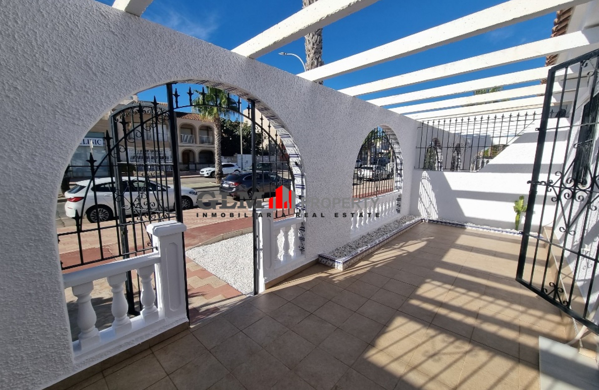 South facing impeccable Bungalow located in Los Narejos. The property comprises of Front terrace leading to the living room, Kitchen, 2 bedrooms and a bathroom. Through the back patio you have access to staircase leading up to the 45 m2 solarium.The property has been well maintained, all windows have been replaced and is being sold fully furnished (furniture has been bought recently). Walking distance to the promenade of Mar Menor and other services such Supermarket, banks, schools, restaurants and others.