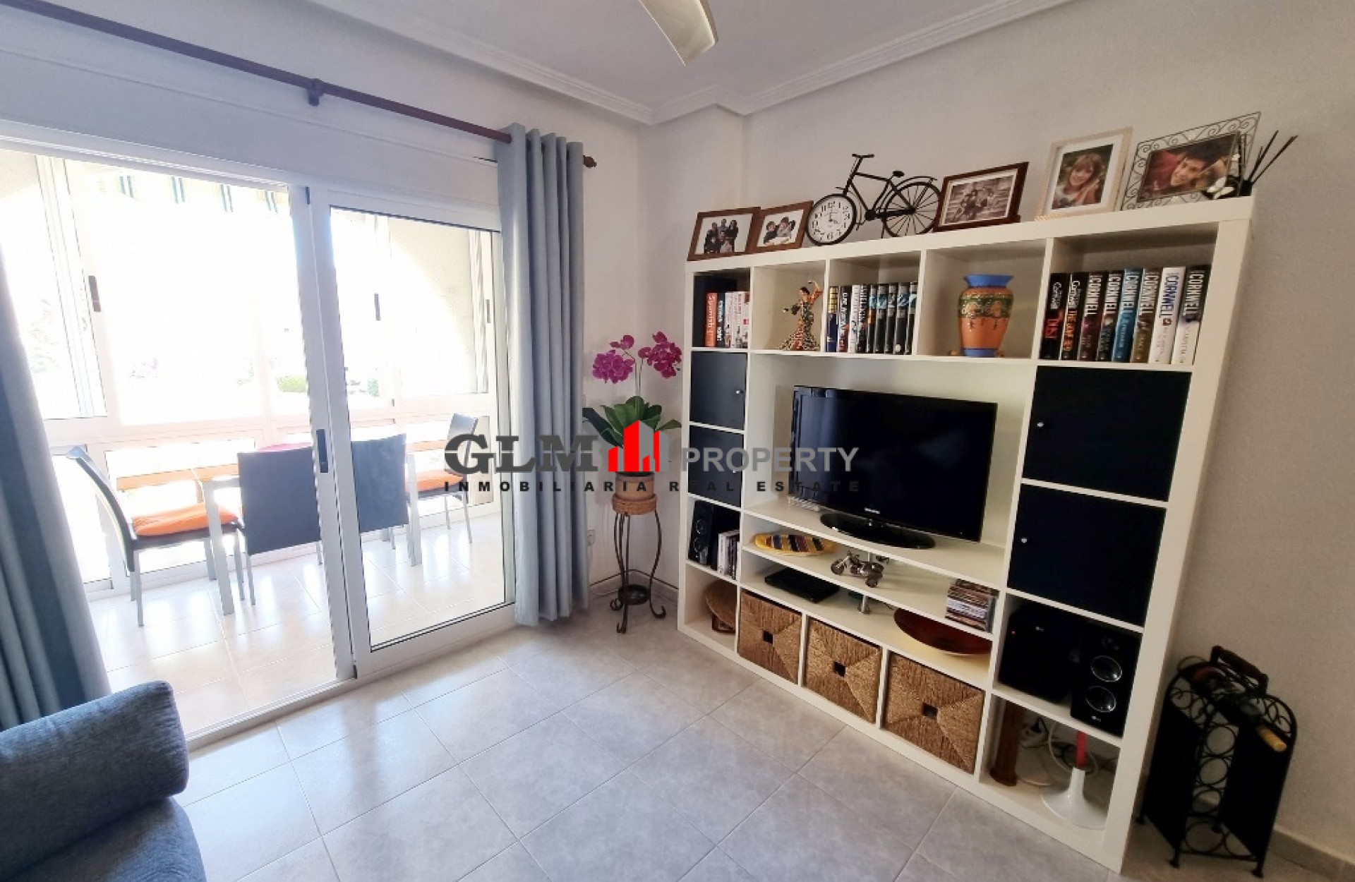 1st floor Apartment located on Residential Playa 1 comprises of 1 bedroom with 2 twin beds and master with a double bed, 2 bathrooms one with bath and second one with shower. Lounge with access to balcony with pool view. Open plan well equipped kitchen with ceramic hob, fridge/freezer, washing machine and microwave. The Residential comes with communal pool and toddlers pool. Nearest beach is within 7/8 minutes’ walk. There is a central square within 5 minutes’ walk of the apartment which has supermarkets, shops, cafes, restaurants and banks.