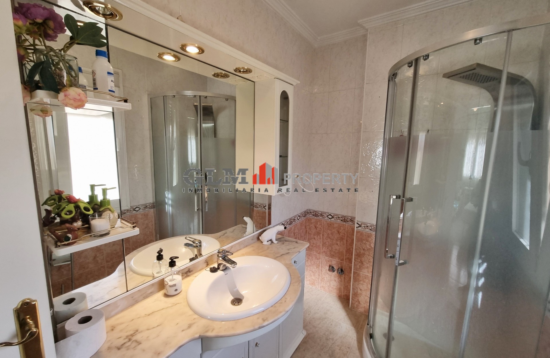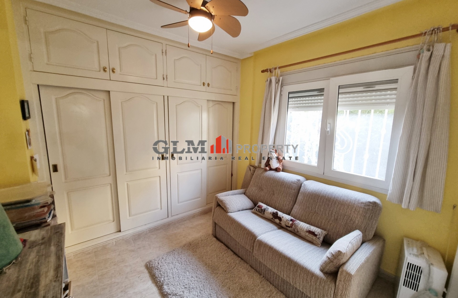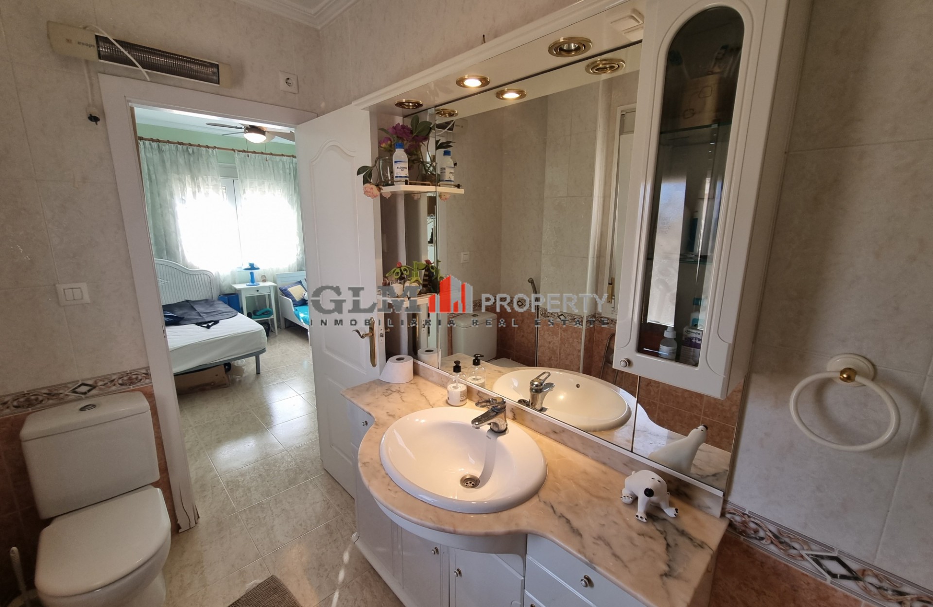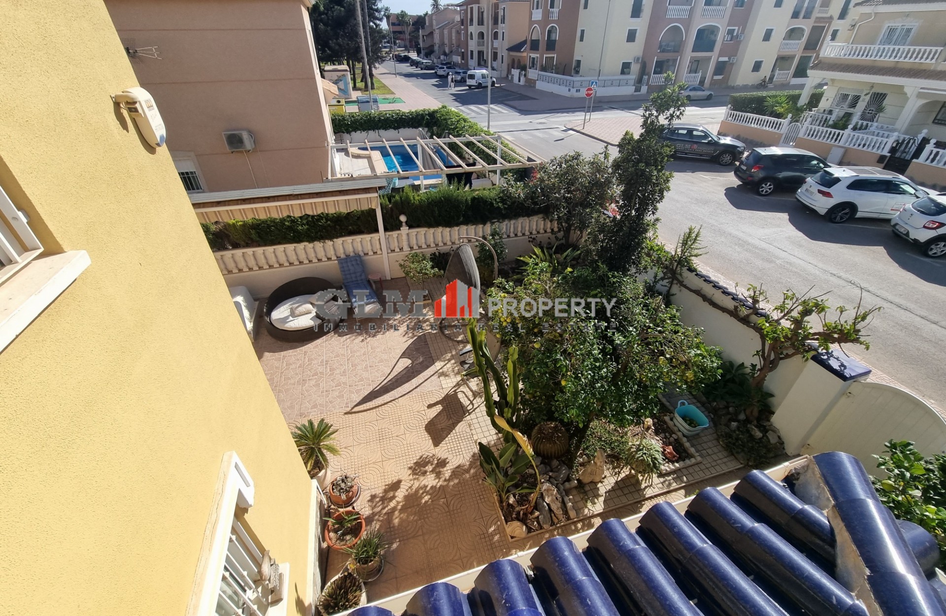 Well located Villa with 4 bedrooms and 3 bathrooms with walking distance to pretty much everything! As you walk through the gate you have a feeling of privacy as the front wall is very high and all the neighbouring properties have their entertainment areas facing the opposite direction. The garden is spacious that has fruit trees, ample space for sunbeds , dining area and also a large swimming pool. The Villa is detached and allows for you to walk round the full property. Before you come in to the main house these is a good sized covered terrace with views out to the garden. As you walk through the front door there is a feeling of space as the lounge and dining area are separate and the kitchen is open plan. You also have a bedroom, bathroom and a basement storage area on the ground floor. On the 2nd floor there are 3 good sized bedrooms with fitted wardrobes, 2 bathrooms and a large terrace leading out from the main bedroom. Walking distance to the promenade of Mar Menor and other services such Supermarket, banks, gas station, schools, restaurants and others.