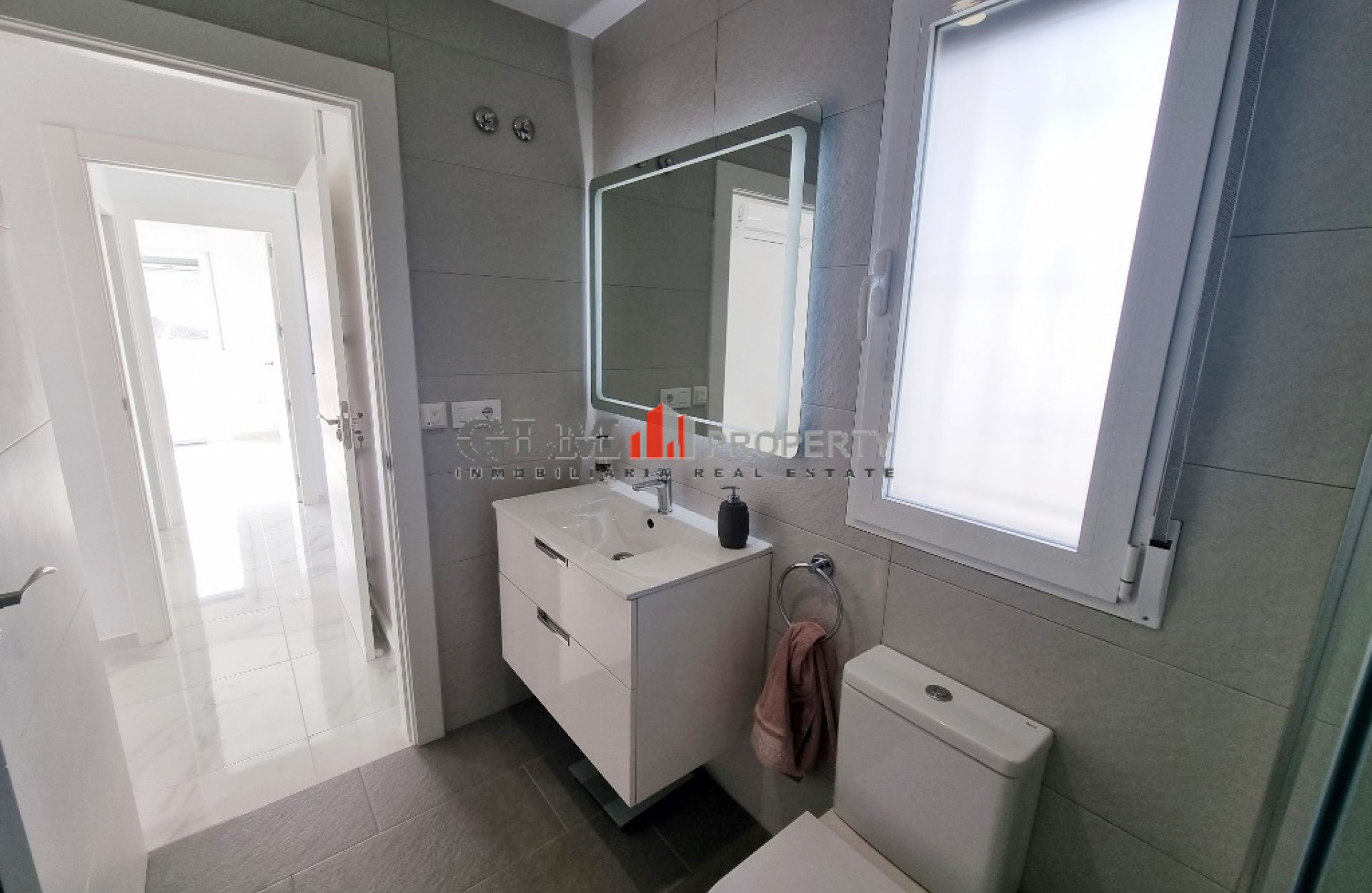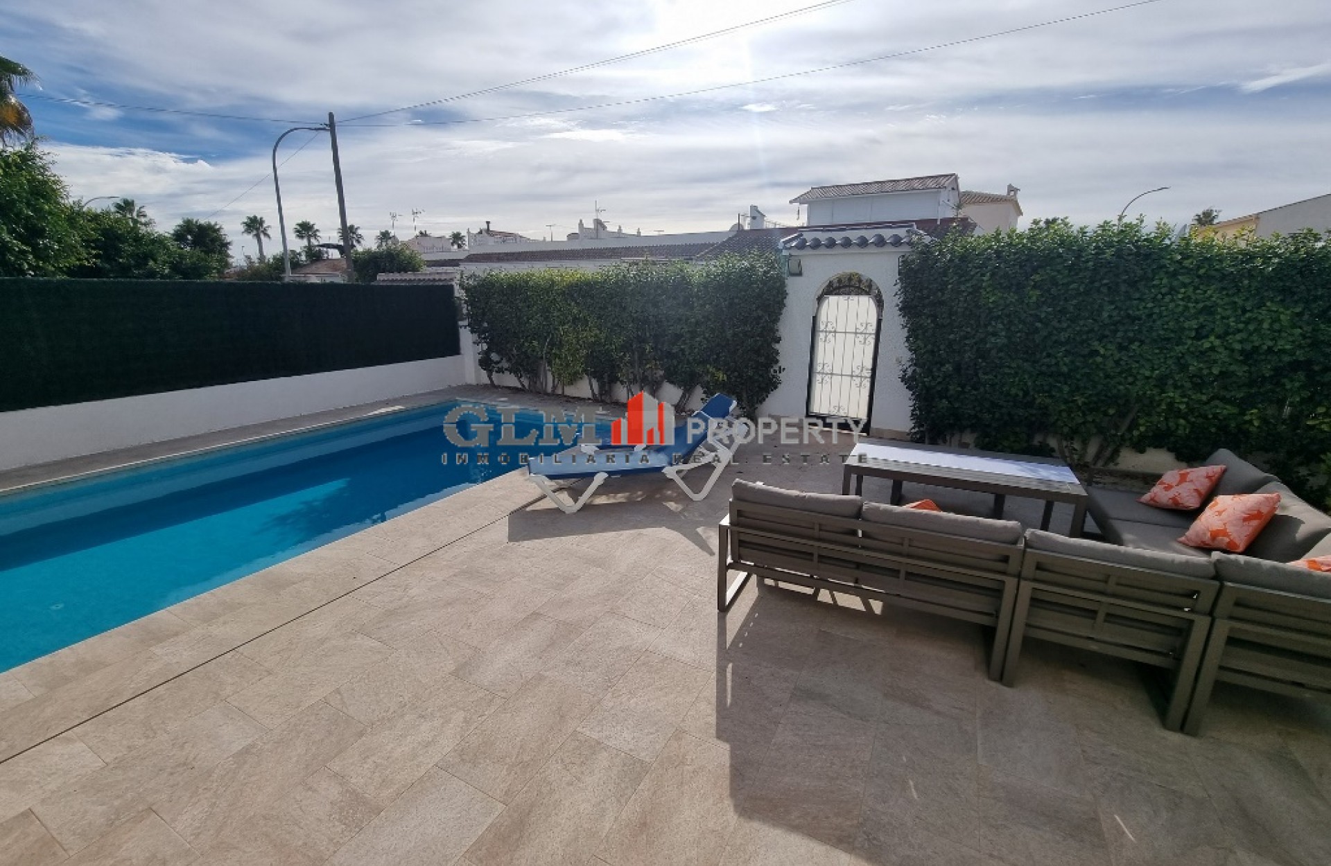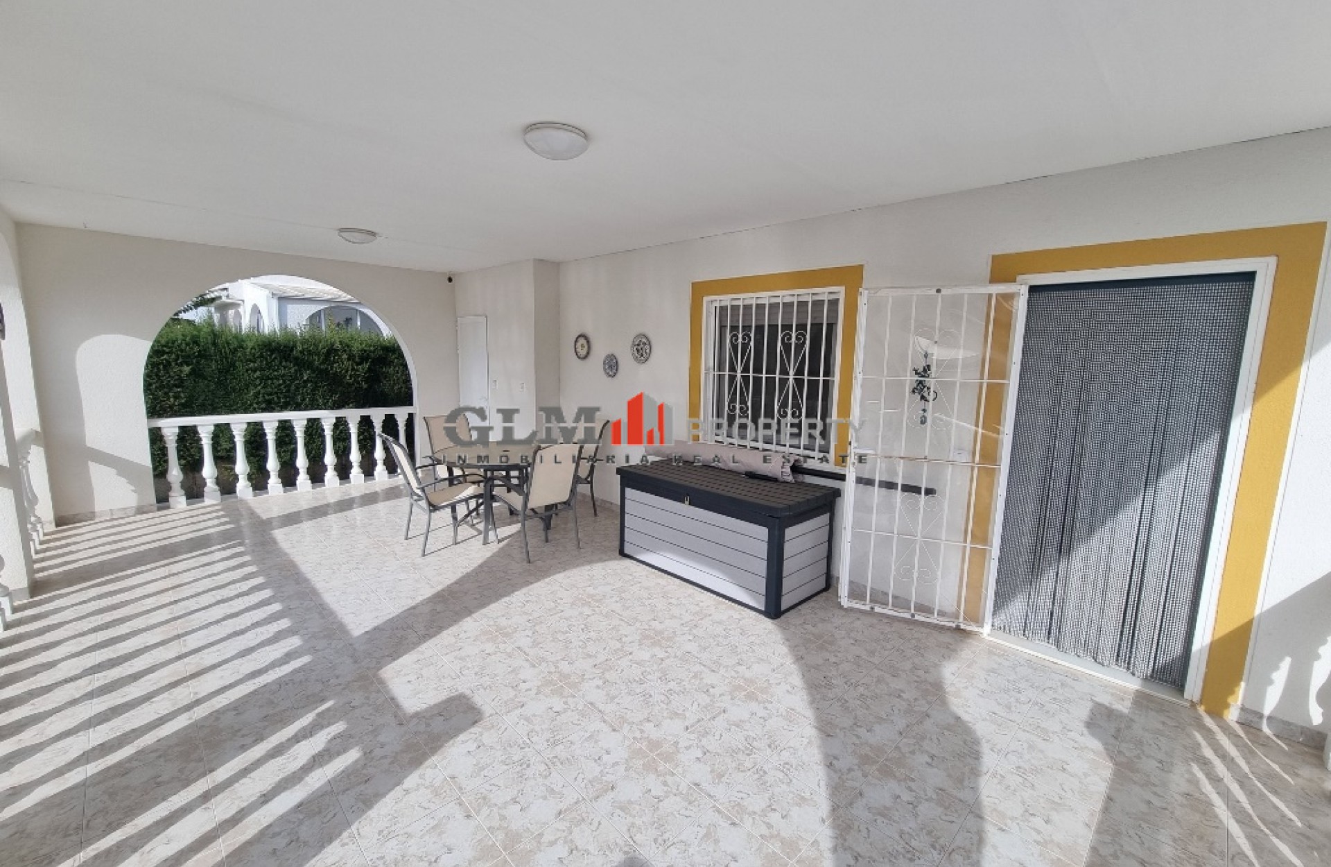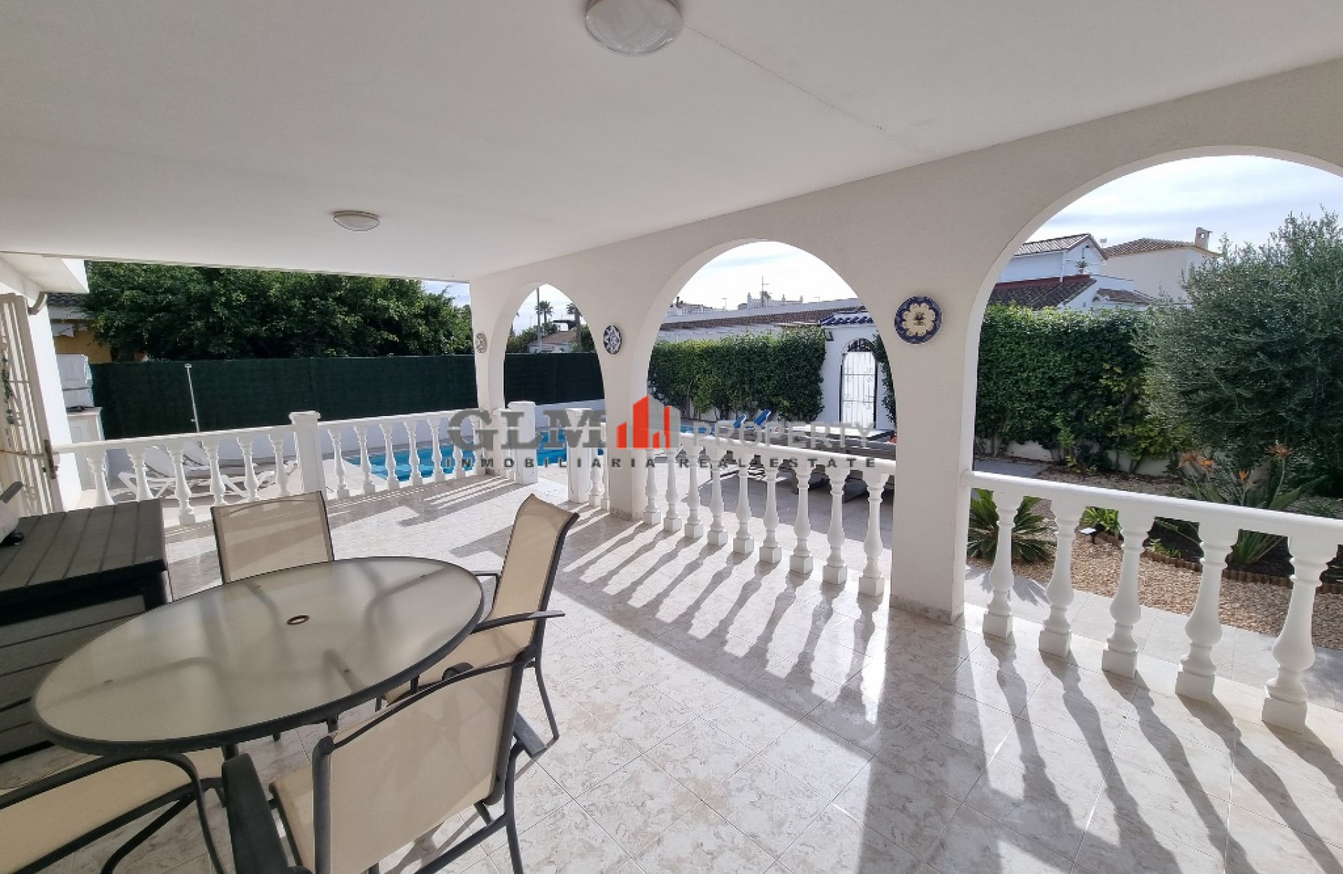 Stunning completely reformed Villa over 2 floors on a plot of 475m2 plot size in the sough after area of Los Narejos. As you come through from the street to the garden you will see a large pool with ample area of sunbeds. The garden goes around the Property and there is space to park minimum 2 cars on the back area of the villa. The covered very spacious front terrace is outfacing and overlooking to the Pool and Garden area. On the ground floor you will find a dining room and lounge, good sized kitchen, 2 bedrooms and bathroom with walk-in shower. Upstairs there are 2 more bedrooms with fitted wardrobes and 2 more bathrooms. Both Bedrooms have access to huge terrace from where you can enjoy exquisite views of the surrounding. The property provides also a utility room. Walking distance to the promenade of Mar Menor and other services such Supermarket, banks, gas station, schools, restaurants and others.