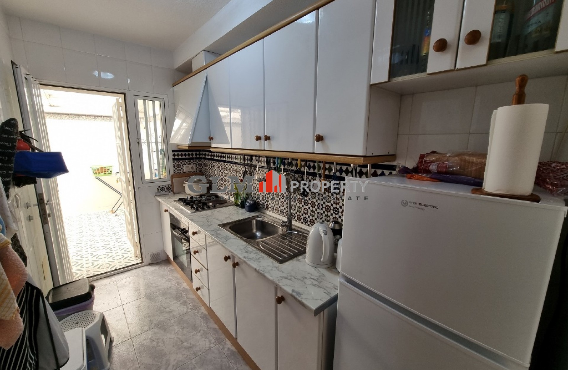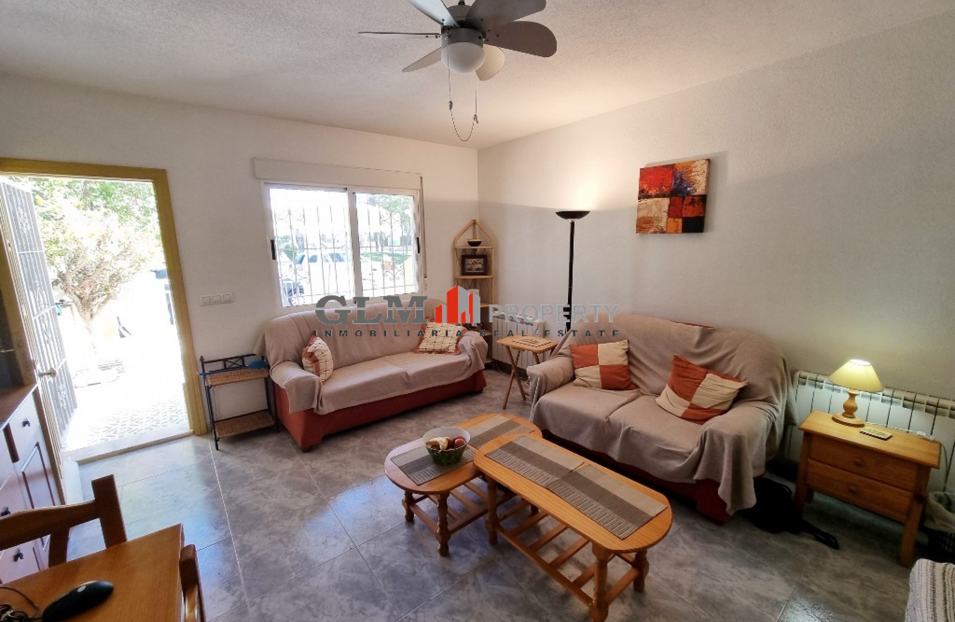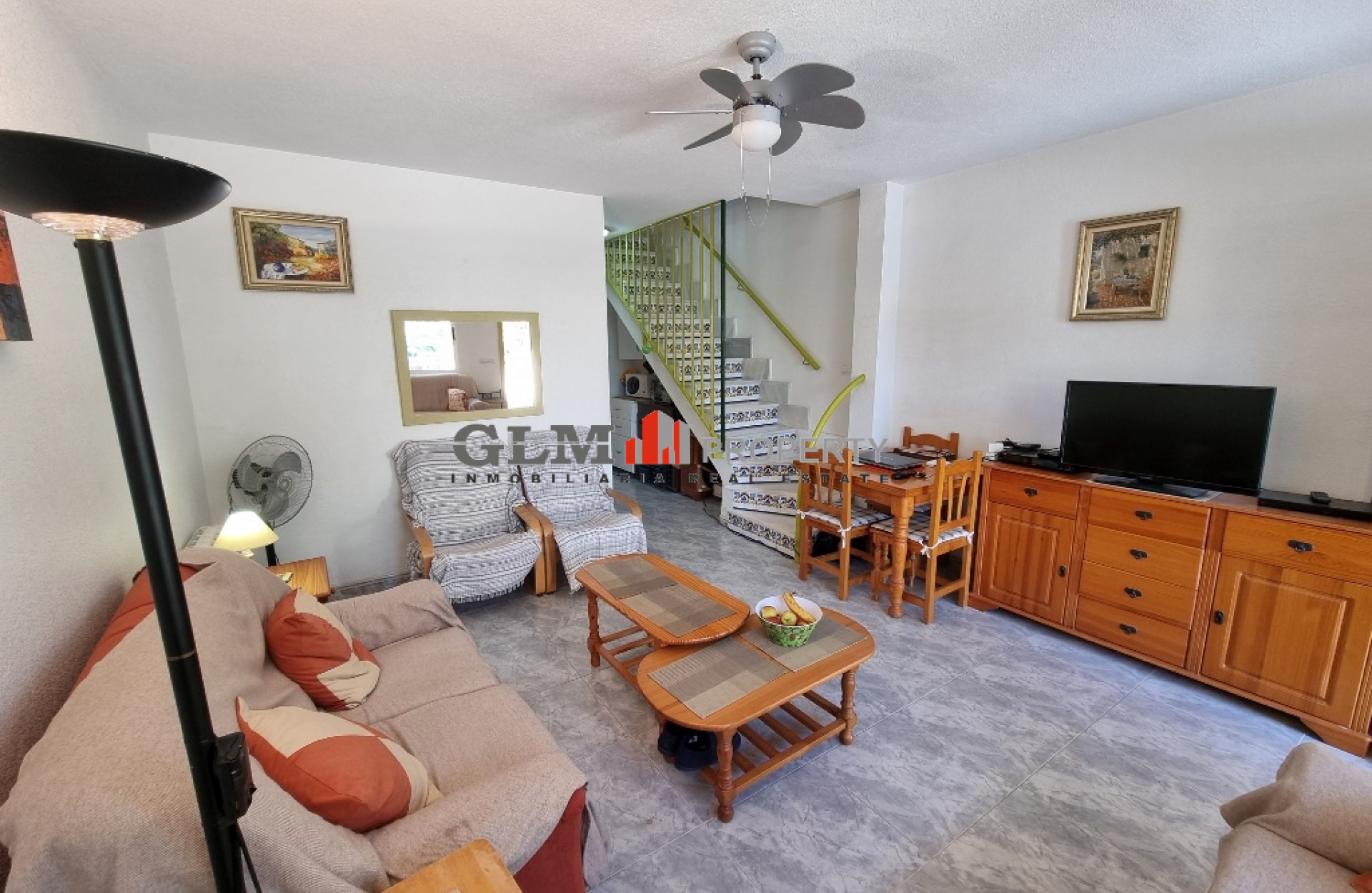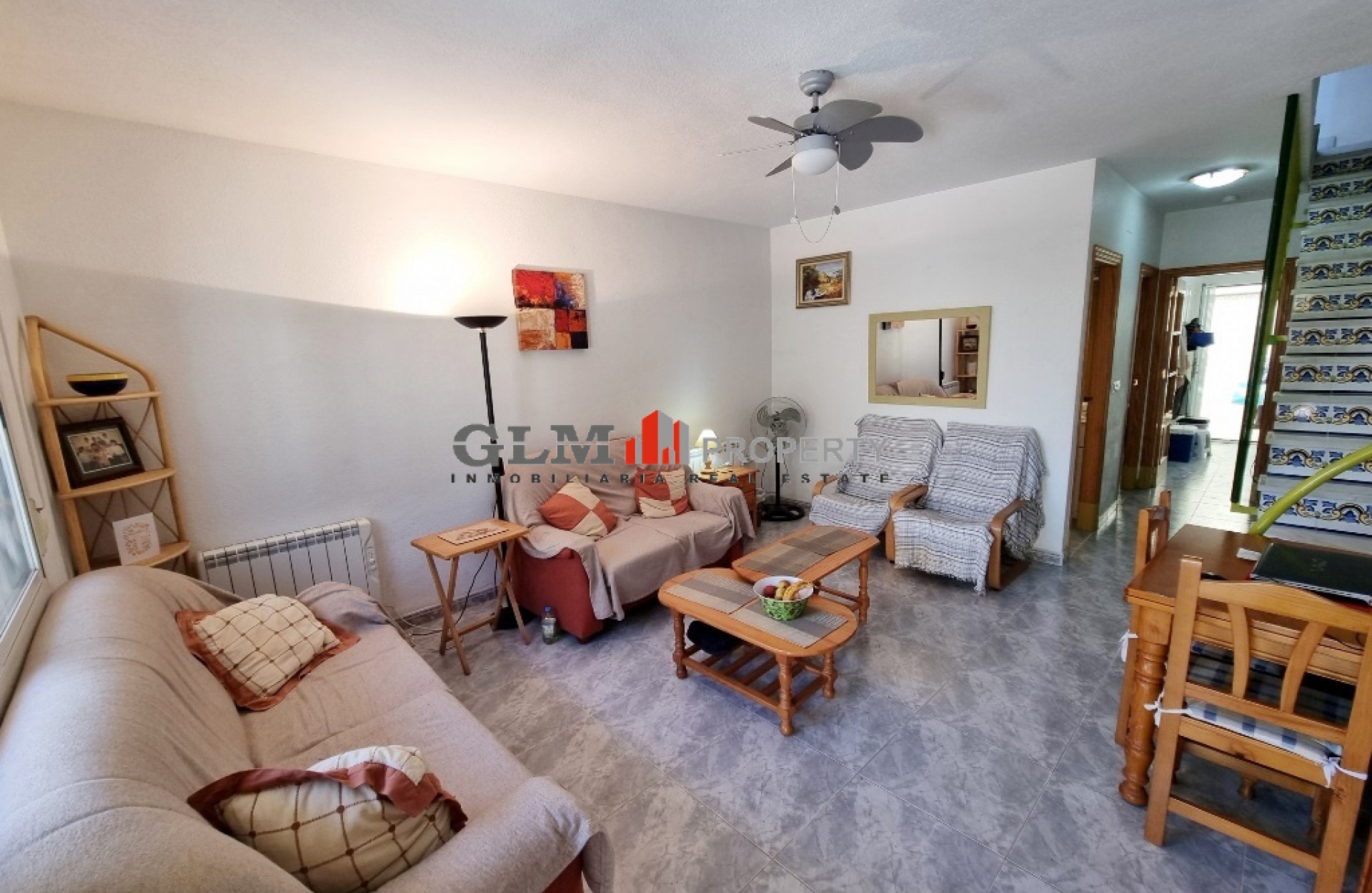 South facing townhouse overlooking to the park boasts comprising of lounge/dining area, equipped fitted kitchen with spacious back patio, bedroom and bathroom, and a terrace to the front of the house with parking space for car. On 1st floor there are 2 bedrooms, 1 with terrace, and a shower room. Located close to the medical centre and the sports centre, and a few minutes drive from supermarkets, shops and the beach.