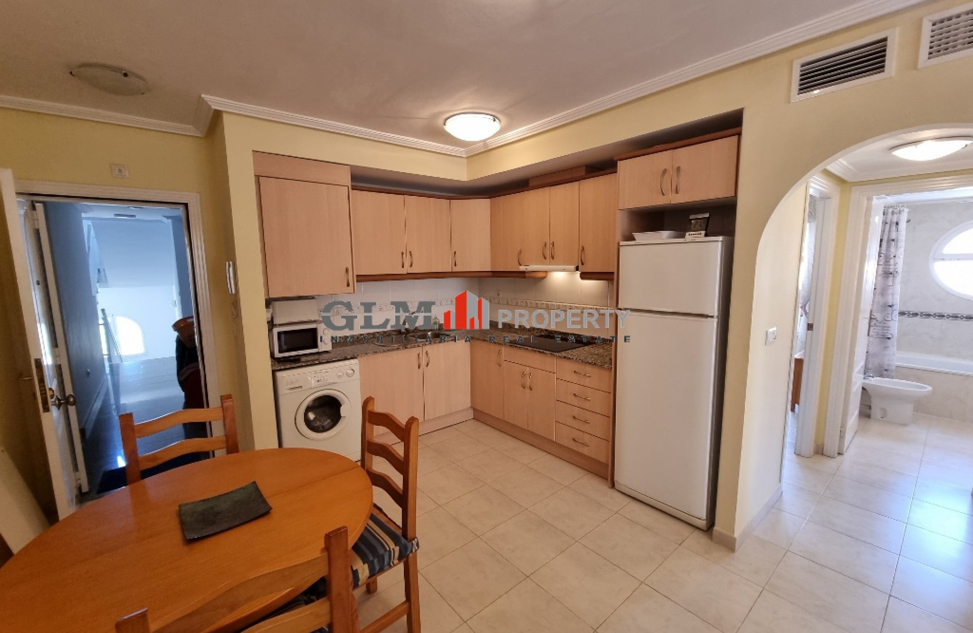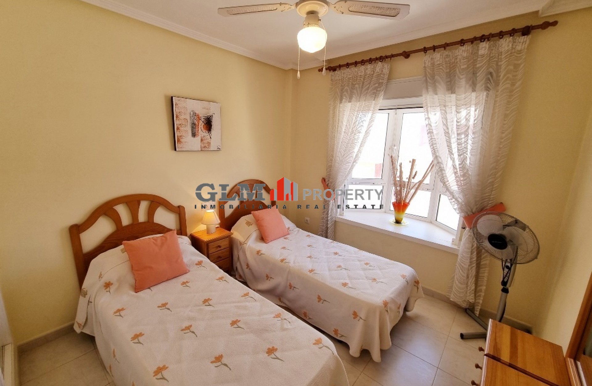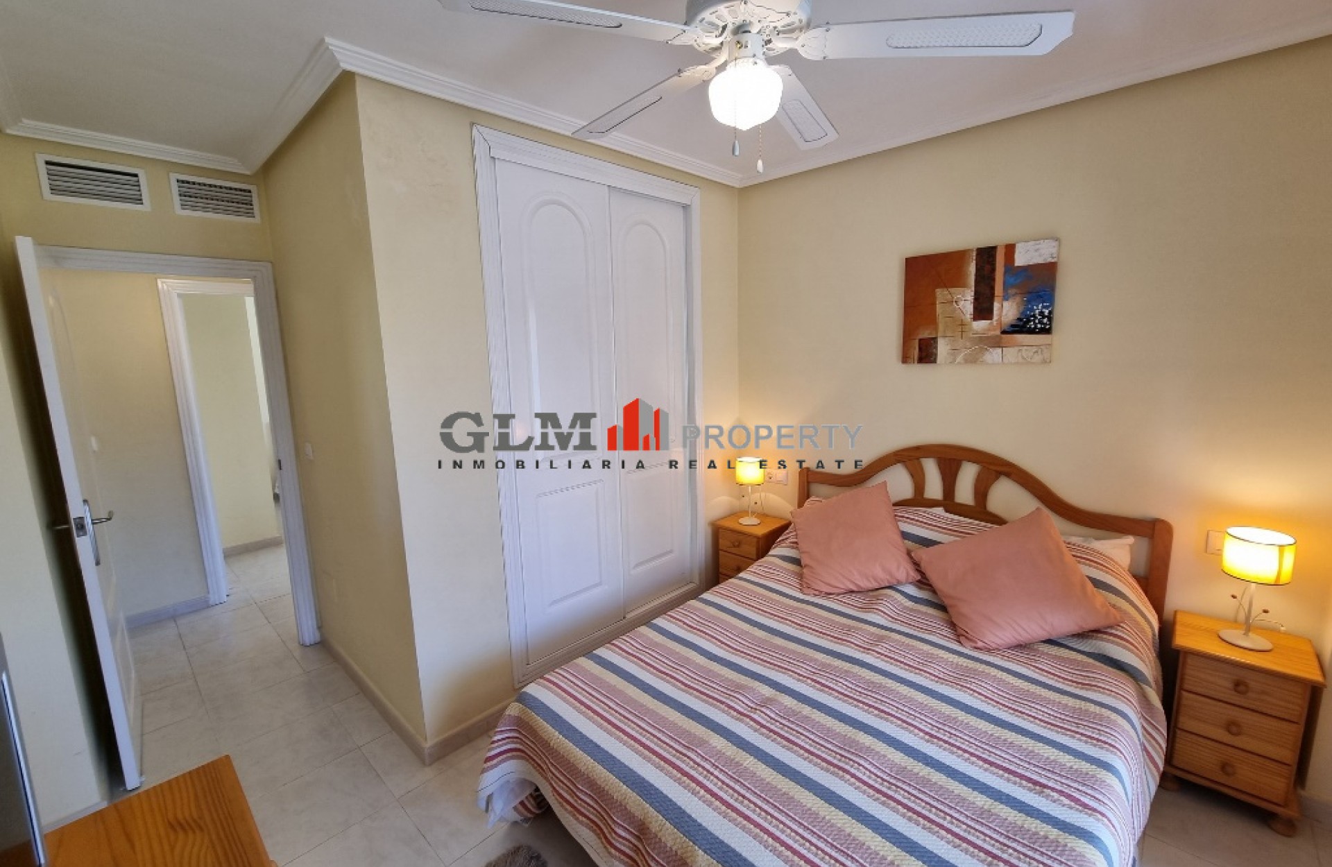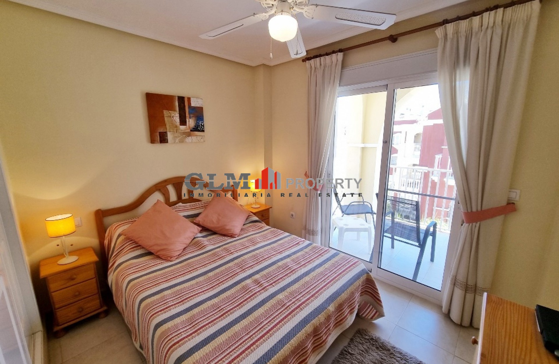 Lovely corner penthouse apartment on the ever popular Puerta Marina Complex! The property benefits from having an open plan kitchen, dining area and lounge all together. There is a large double balcony that you have access from the lounge and the main bedroom. Both bedroom are doubles and very light and airy due to the large windows. Inbetween the 2 bedrooms is the good sized bathroom with a bath. Upstairs there is a large solarium with views out over the town that also has a large room and its own bathroom. This could be used as a 3rd bedroom but also saves having to go downstairs when you are on the solarium for any length of time. Puerta Marina is a very popular complex as it has 3 large communal pool with lots of communal areas and is ever so close to the restaurants, Bars , supermarkets and also the Beach and promenade.