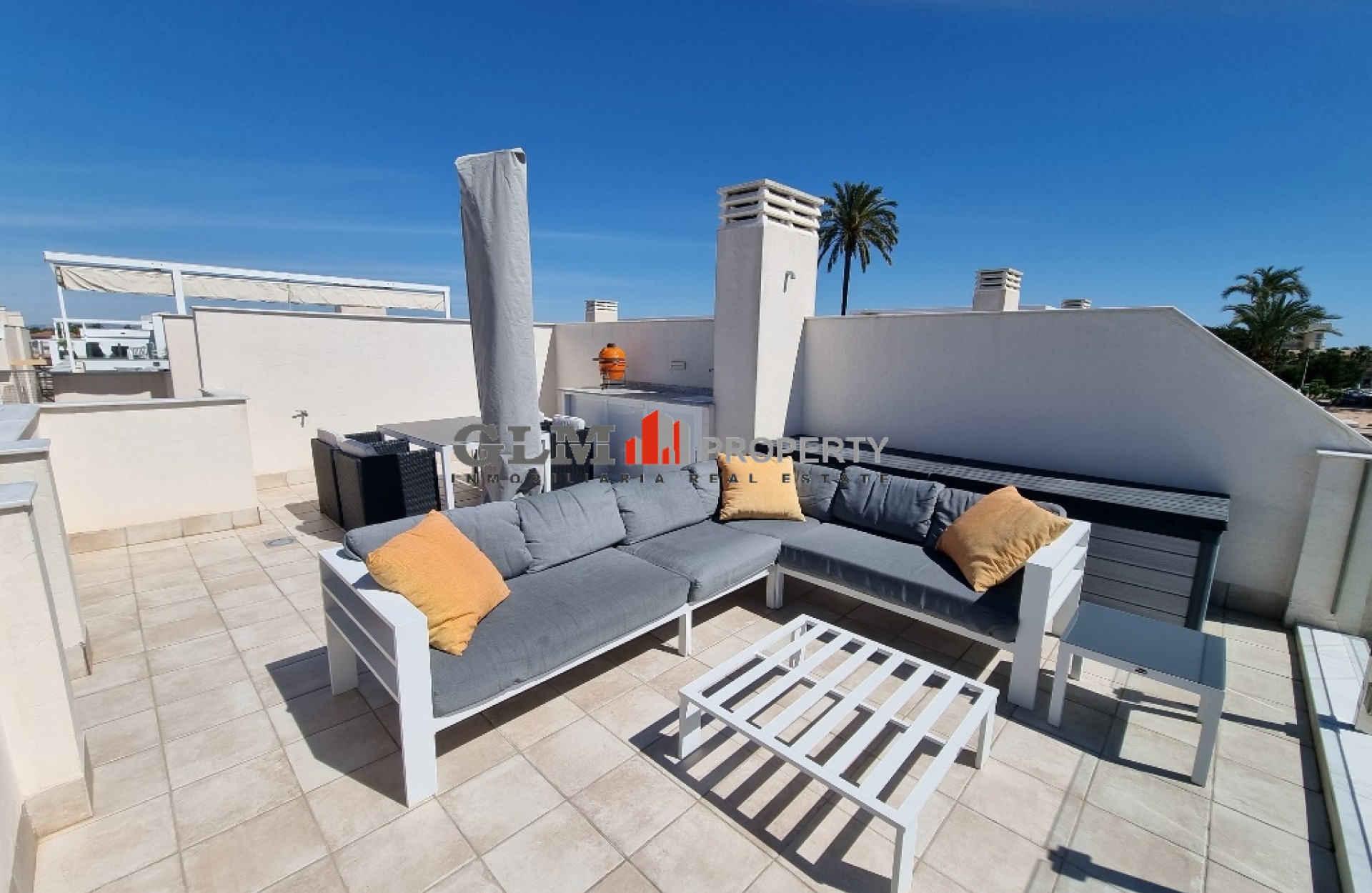 Perfectly designed beautiful 3 Bedroom / 2 Bathroom Villa has been thoughtfully designed to provide the perfect individual private contemporary living space, featuring double full glass sliding doors that open directly on to a large terrace with private swimming pool. Centrally located only 300 meters from the beach and walking distance to restaurants, bars, shops, etc. The villa offers a bright spacious lounge, equipped open plan kitchen with breakfast bar, 1 bedroom and 1 bathroom on ground floor, and 2 bedrooms and a bathroom on first floor. There is a private pool with terrace, a terrace on first floor and a solarium. An underground parking space with store room is included in the price.