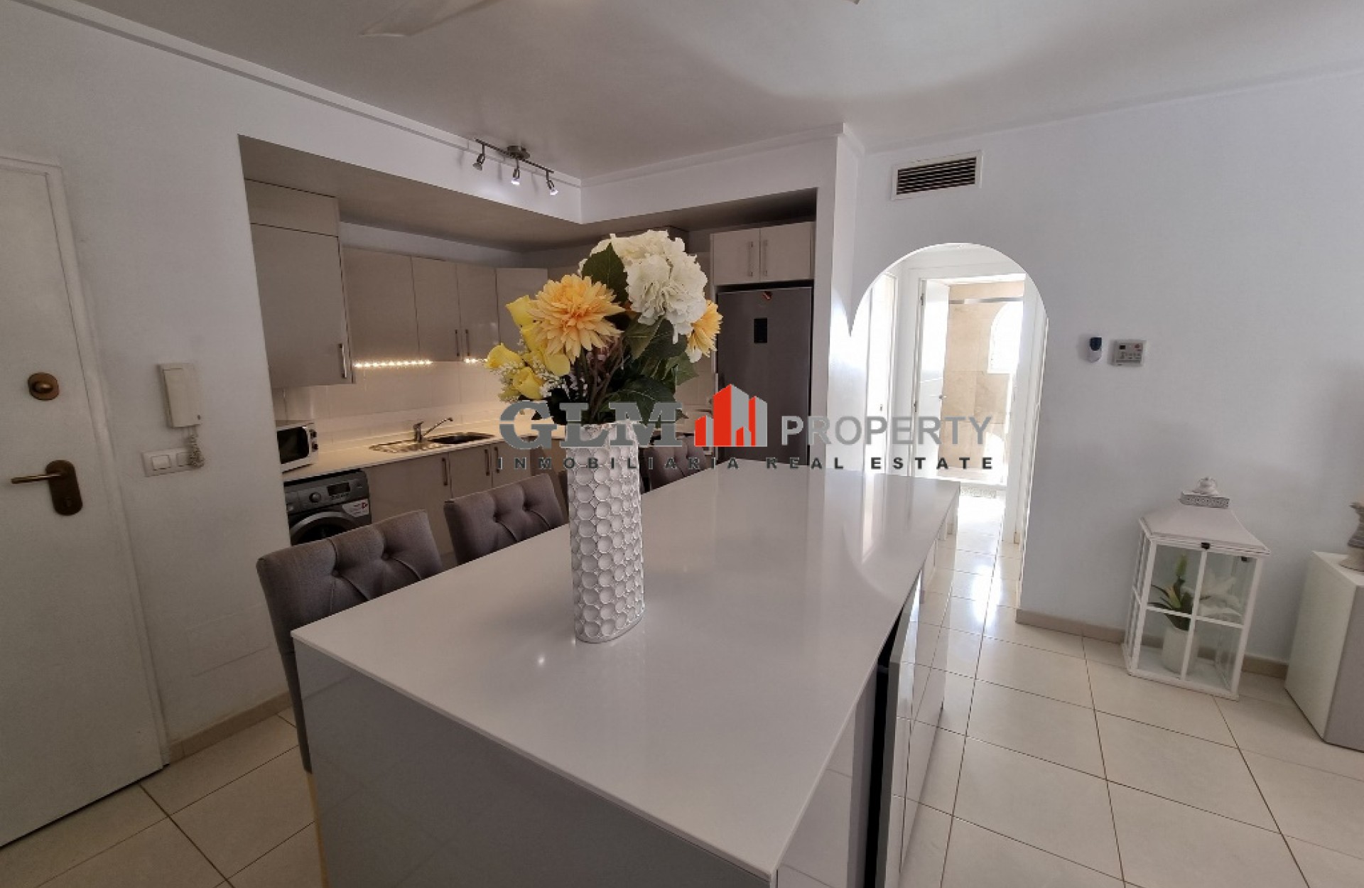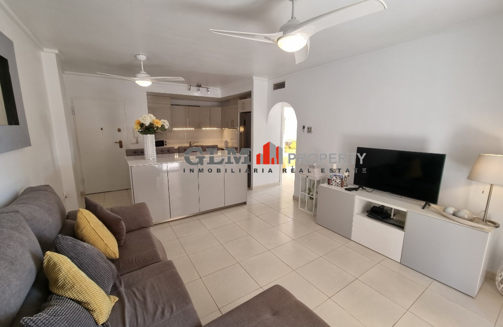 Ground floor apartment located in the Puerto Marina complex. The spacious outdoor area is ideal for sunbathing. Inside, you'll find a roomy kitchen, dining, and lounge area. This apartment features two large bedrooms with fitted wardrobes and a good-sized bathroom. Although sold unfurnished, the property offers a blank canvas for you to add your personal touch. Residents can enjoy several communal pools and beautifully kept gardens within the complex. Located close to shops, supermarkets, and restaurants, and just a short walk to a 5 km promenade of stunning beaches. Enjoy the vibrant local scene with bars and water sports readily available on the beaches.