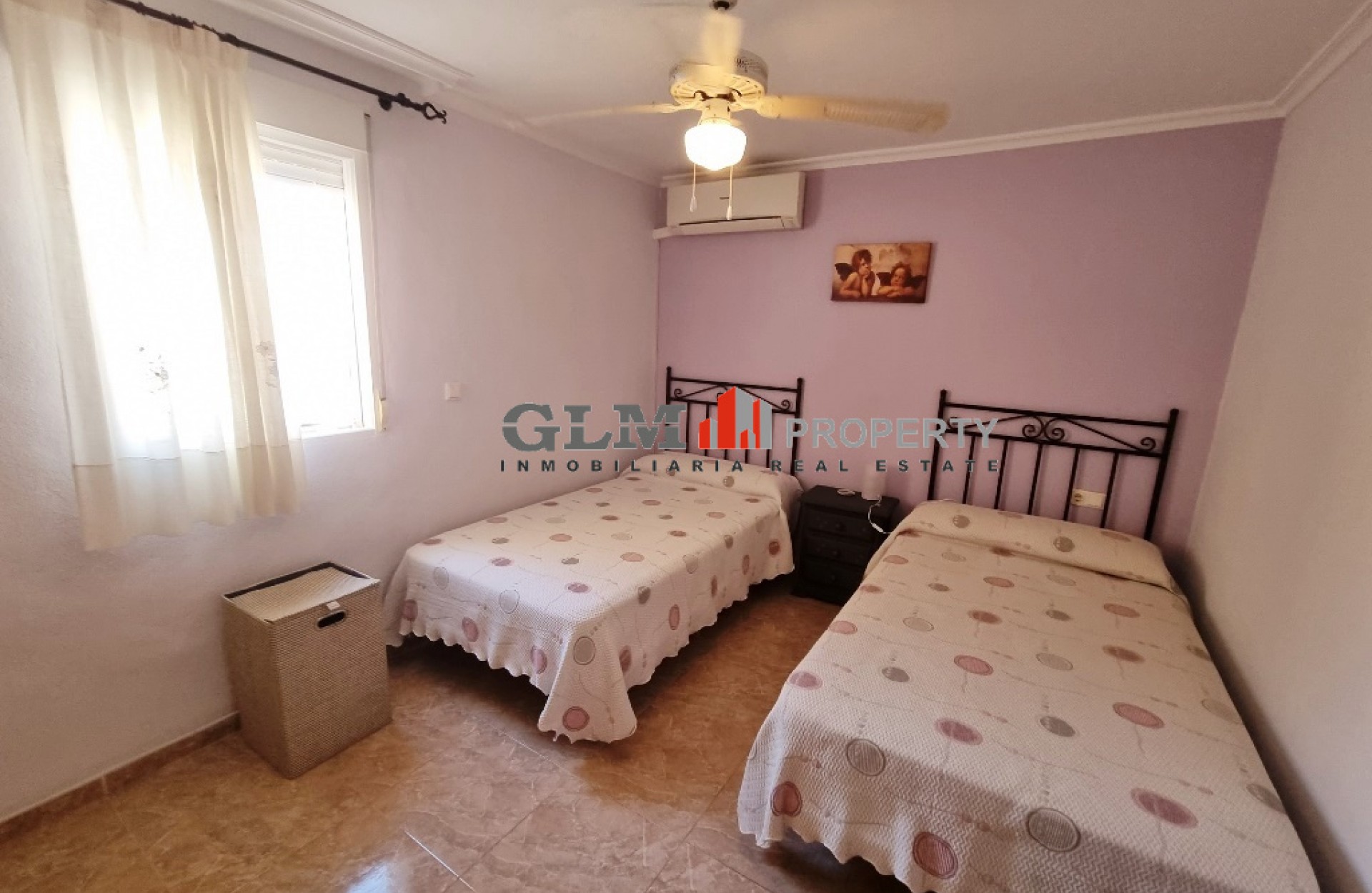 A ground floor apartment located in the heart of Los Alcazares. This home offers a lounge room upon entry. There is a second lounge/dining area with an open kitchen, which has access to a back terrace. The apartment features two bedrooms with fitted wardrobes, one of which has access to an inner patio. The bathroom includes a walk-in shower, and there's a separate toilet for guests. This property is to be sold partly furnished, making it easier for you to move in and start enjoying your new home right away. This apartment includes air conditioning and a parking space. And is just a short walk to the beautiful beaches of Mar Menor and close to all essential amenities.