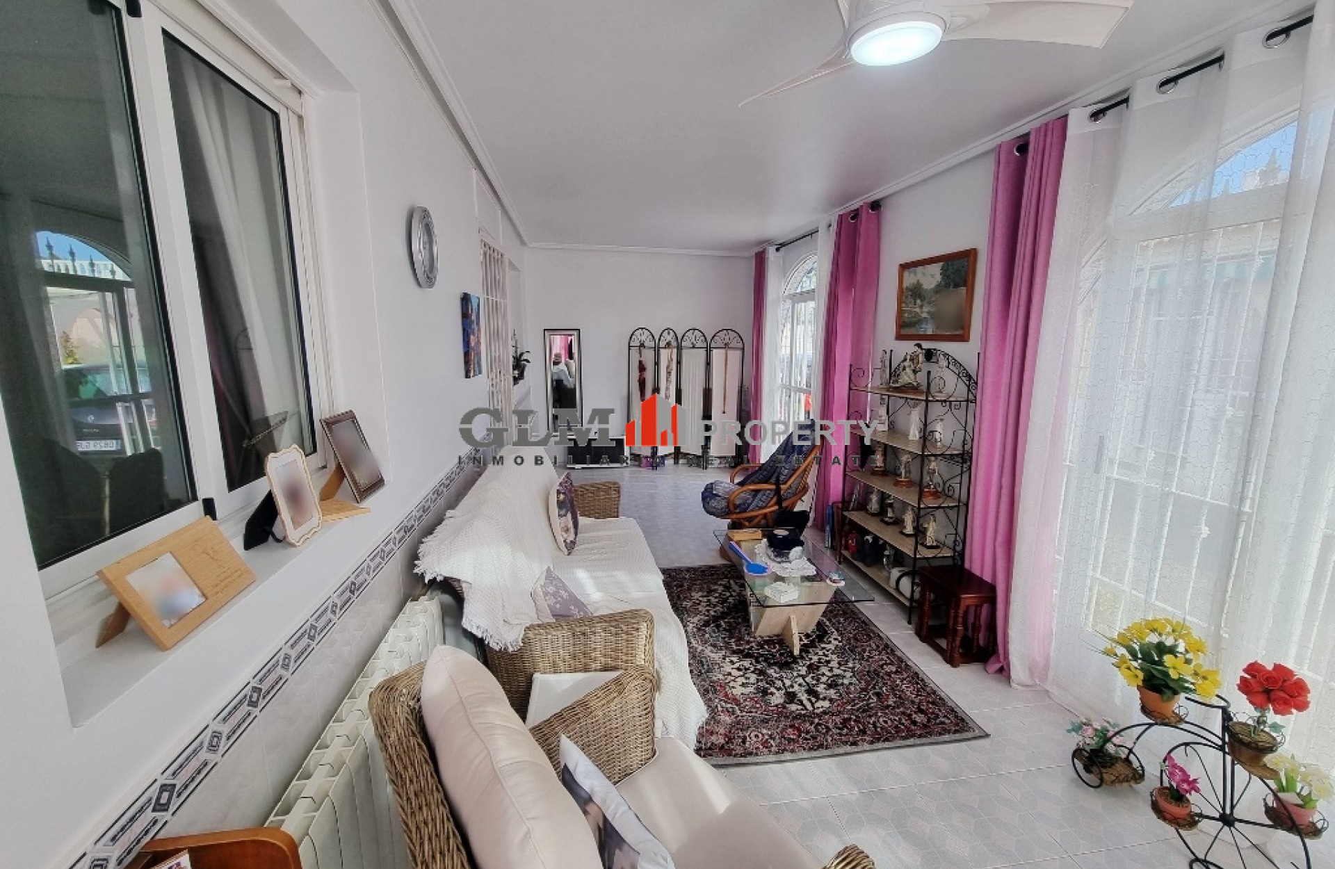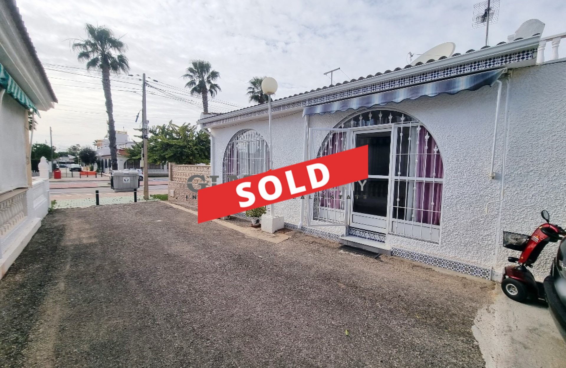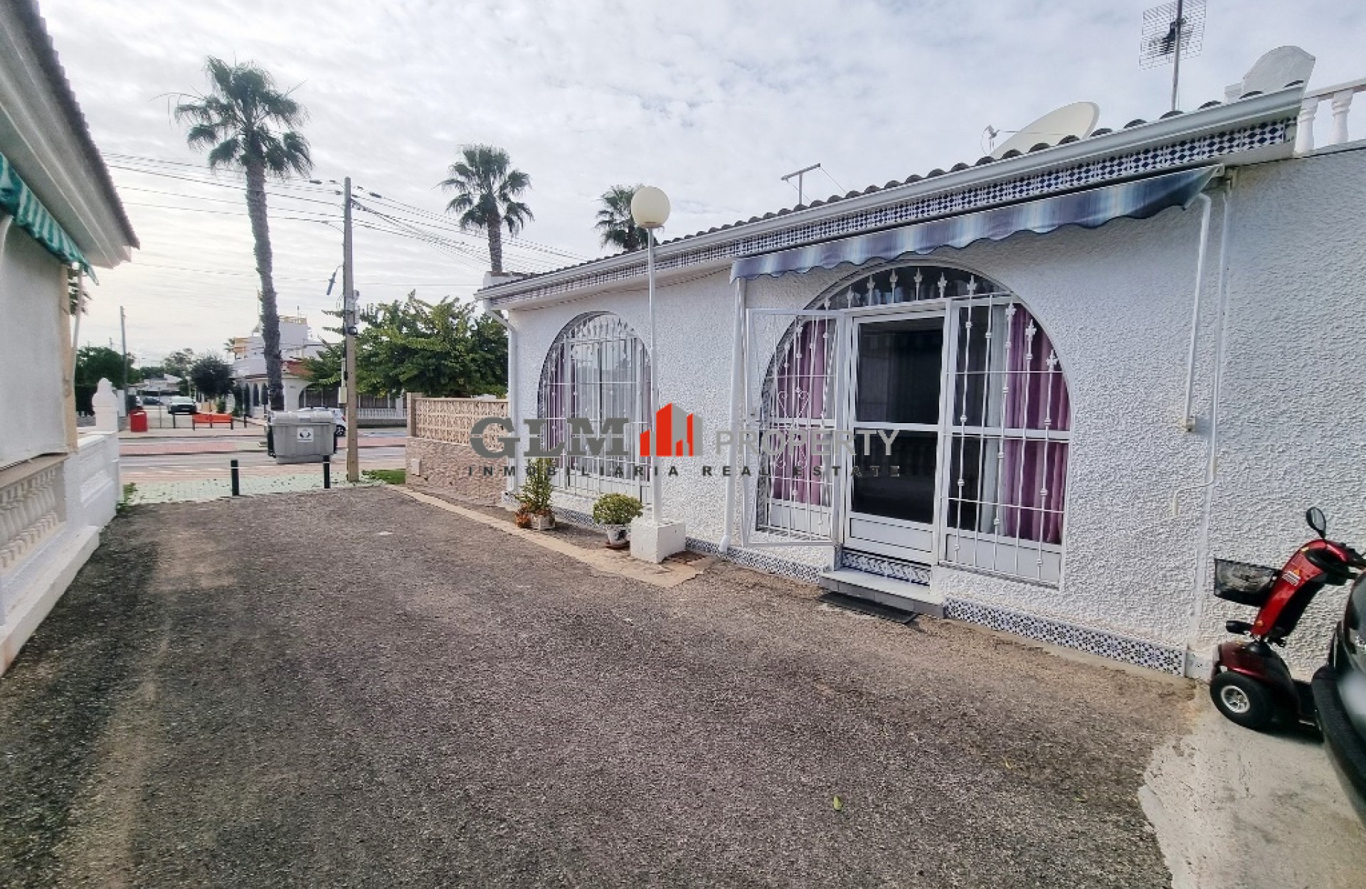 Take a look at this corner bungalow in the urbanization of Oasis, Los Narejos! Part of the front porch has been enclosed and is used as an additional lounge area. It features two spacious double bedrooms with built-in wardrobes. The recently renovated bathroom boasts a relaxing tub. The open plan kitchen has access to a side passage that leads to the side patio and to the stairs that lead to the rooftop solarium. At the side patio you find a dedicated barbecue area, perfect for al fresco dining with family and friends. For sun lovers, the rooftop solarium is a true highlight, offering a private retreat to soak up the sun. Situated just a short stroll from the Mar Menor promenade, this property is also conveniently close to essential amenities like supermarkets, banks, schools, and restaurants.