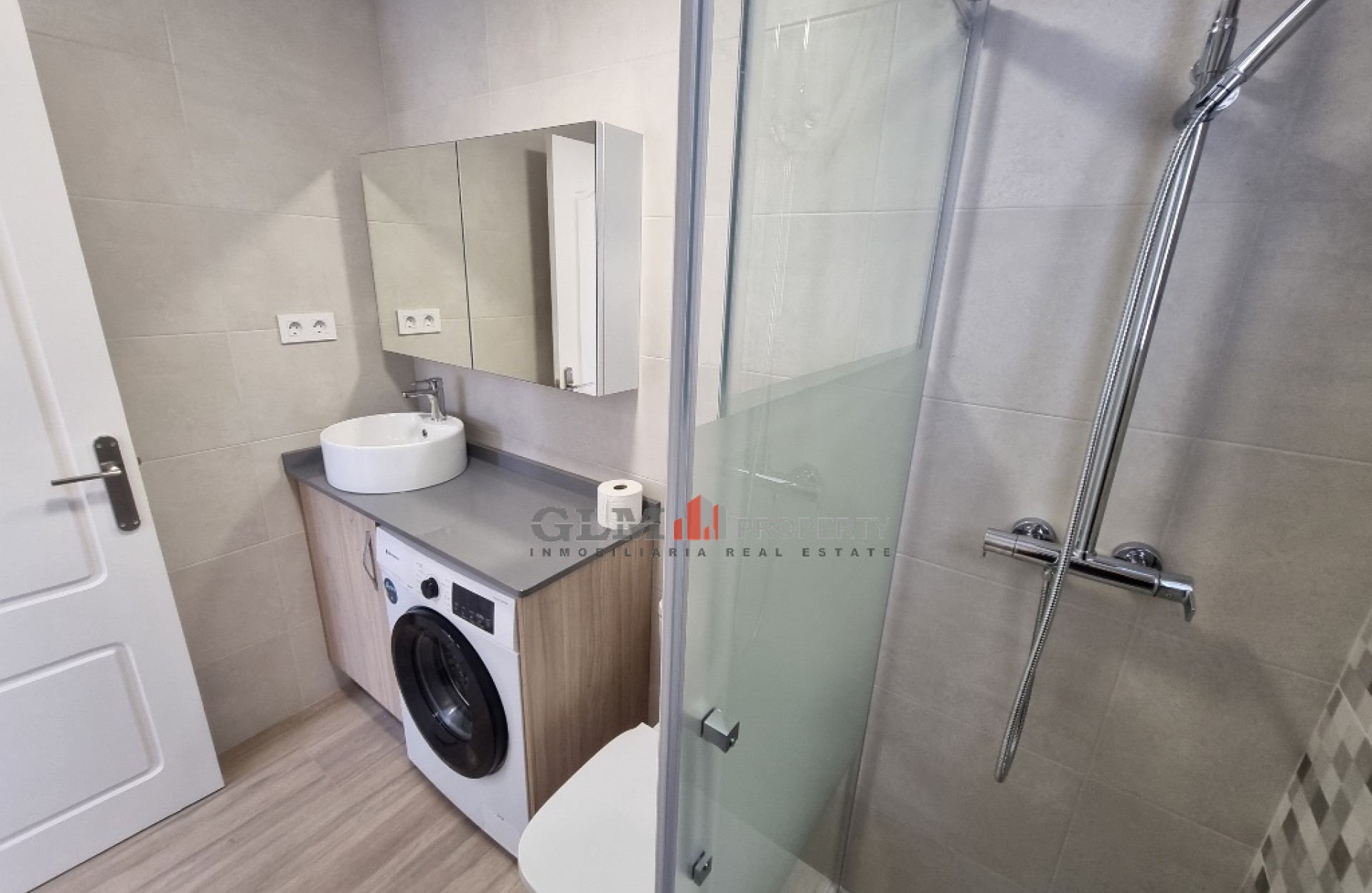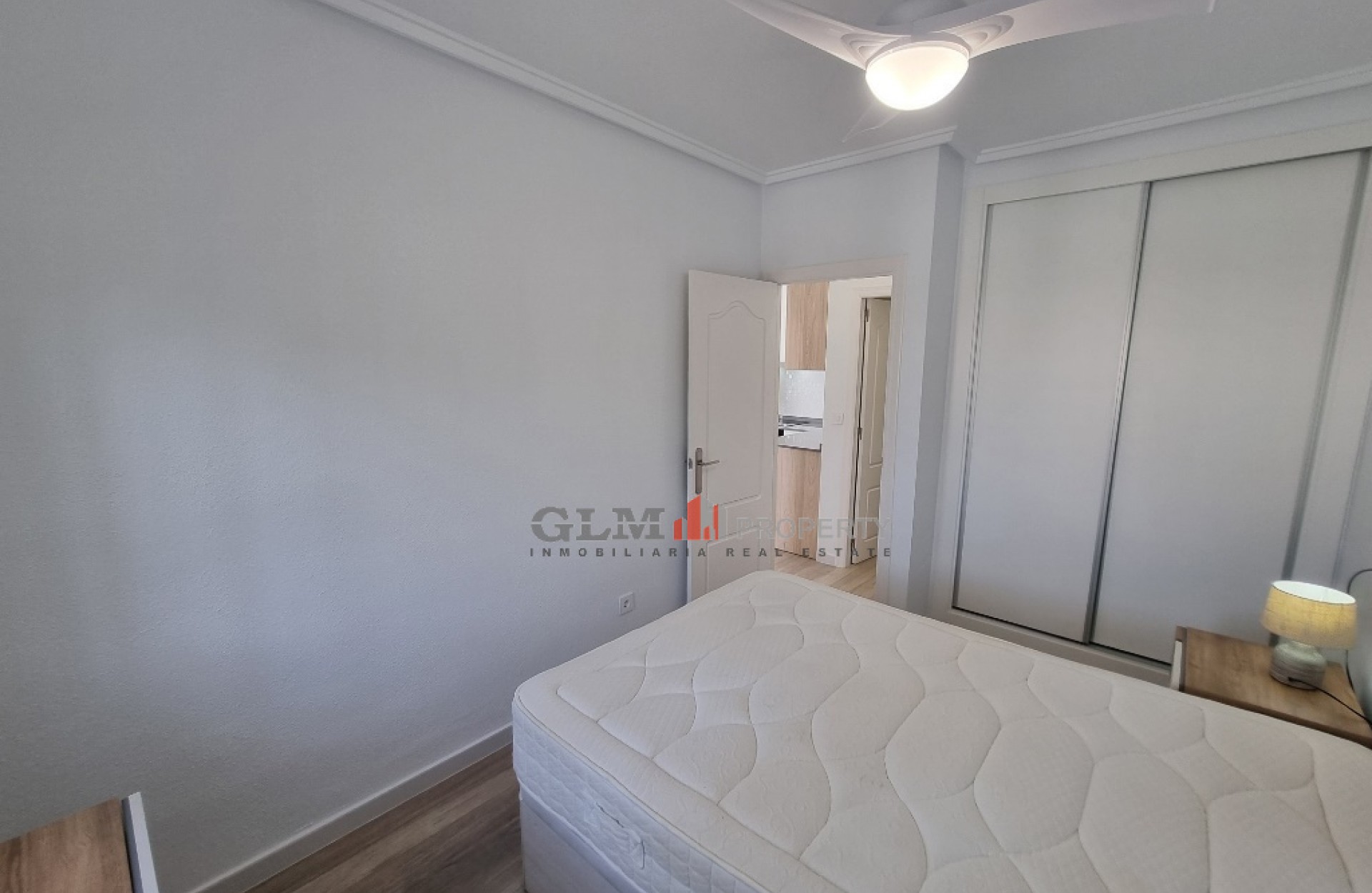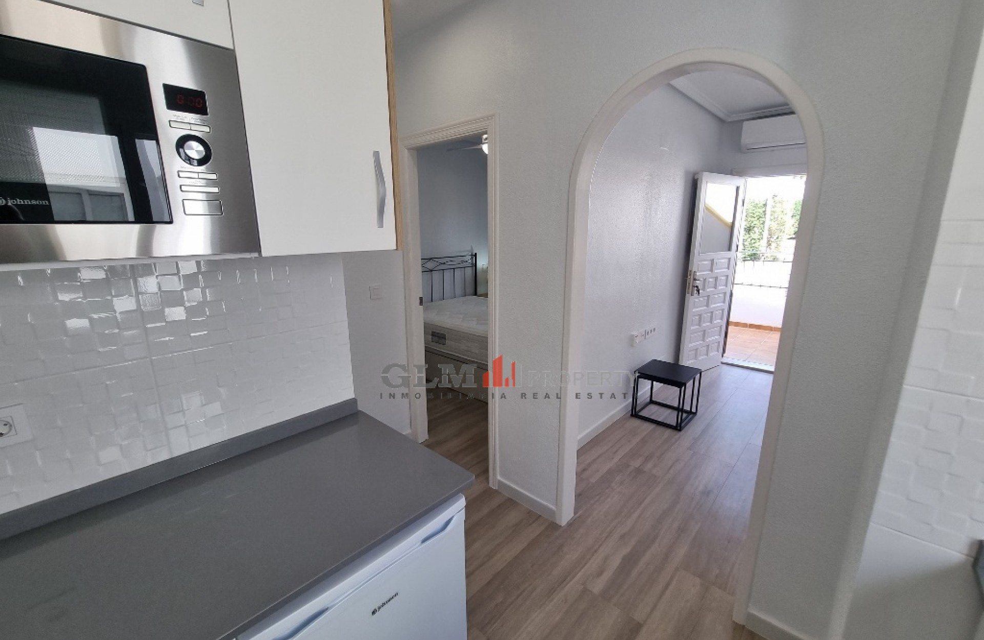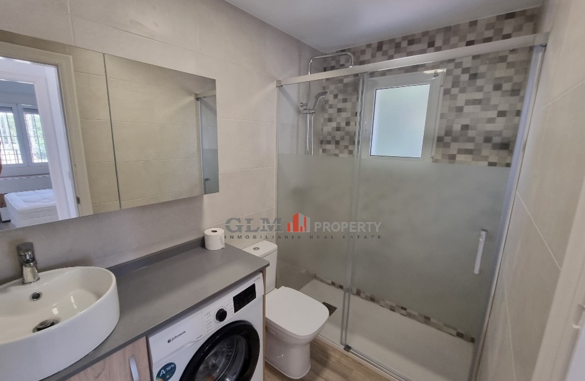 Fully renovated lovely corner 1st floor apartment with 1 bedroom and 1 bathroom. There is a large front terrace and a more private solarium upstairs allowing for elevated views over the immediate park , communal pool and local area.The property has a lovely spacious lounge and dining area. The kitchen is compact and with space for everything. There is a double bedroom and also a bathroom. The property has access to a communal pool. The apartment is well located and allows for walking distance to everything including, bars, restaurants, supermarkets and also the beach and promenade. The property has been renovated to a very high standard which allows the new owners to add some furnishings and start enjoying themselves.